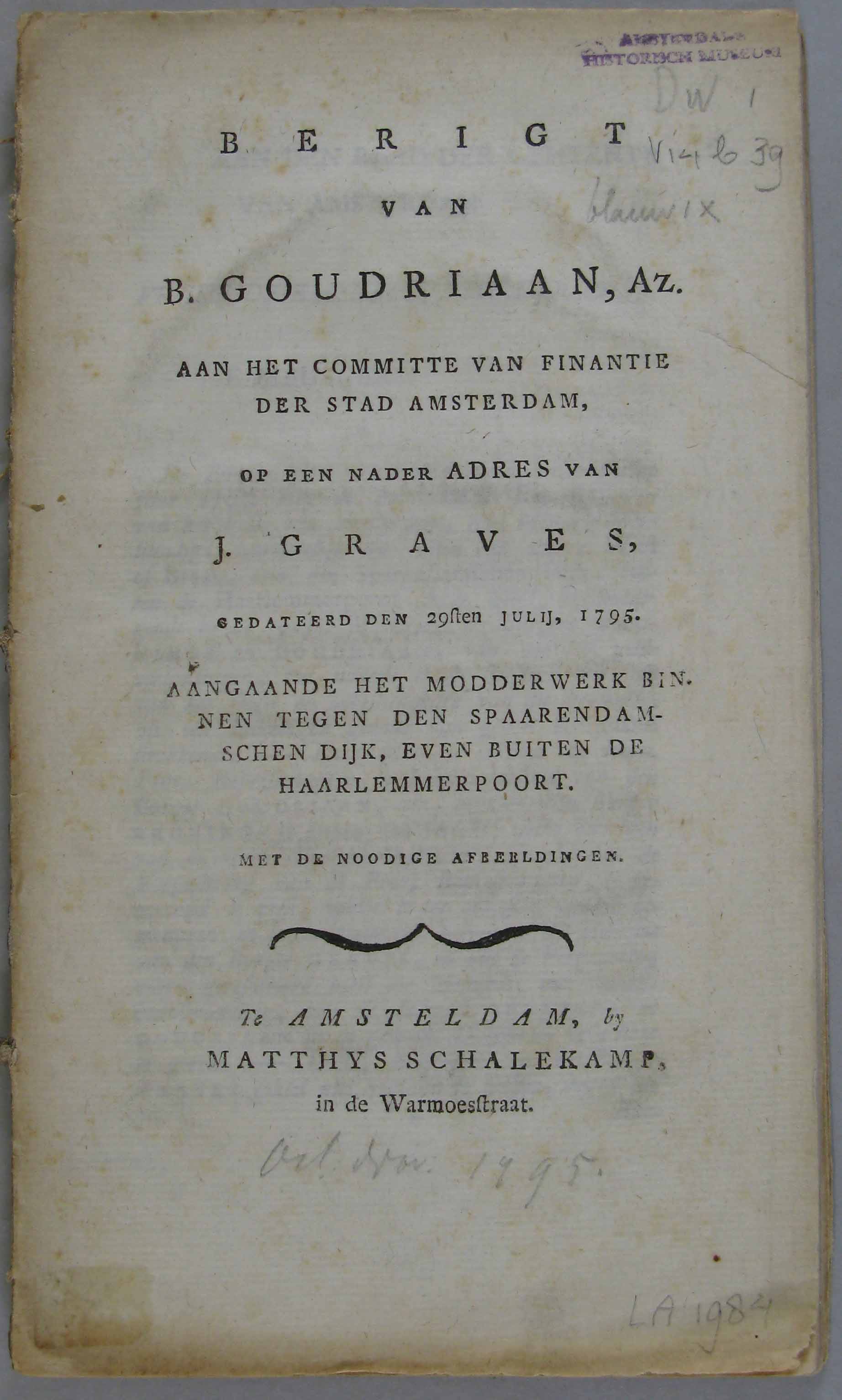 Berigt van B.Goudriaan aan het Committe van Finantie...