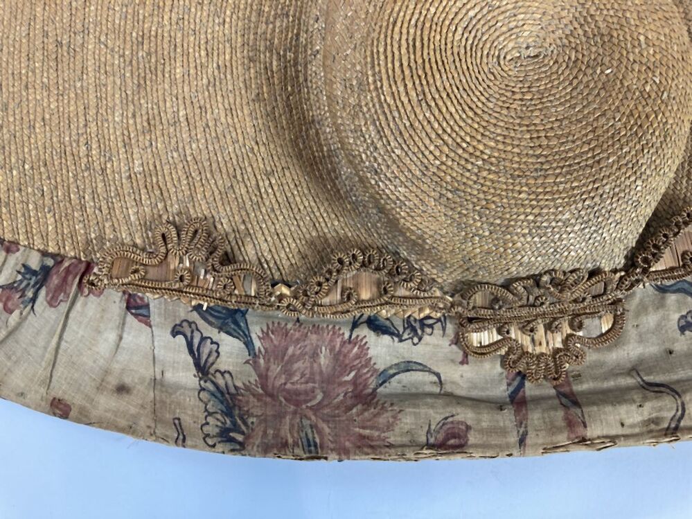 Zonhoed met sitsen voering, beschilderd met lossen b...