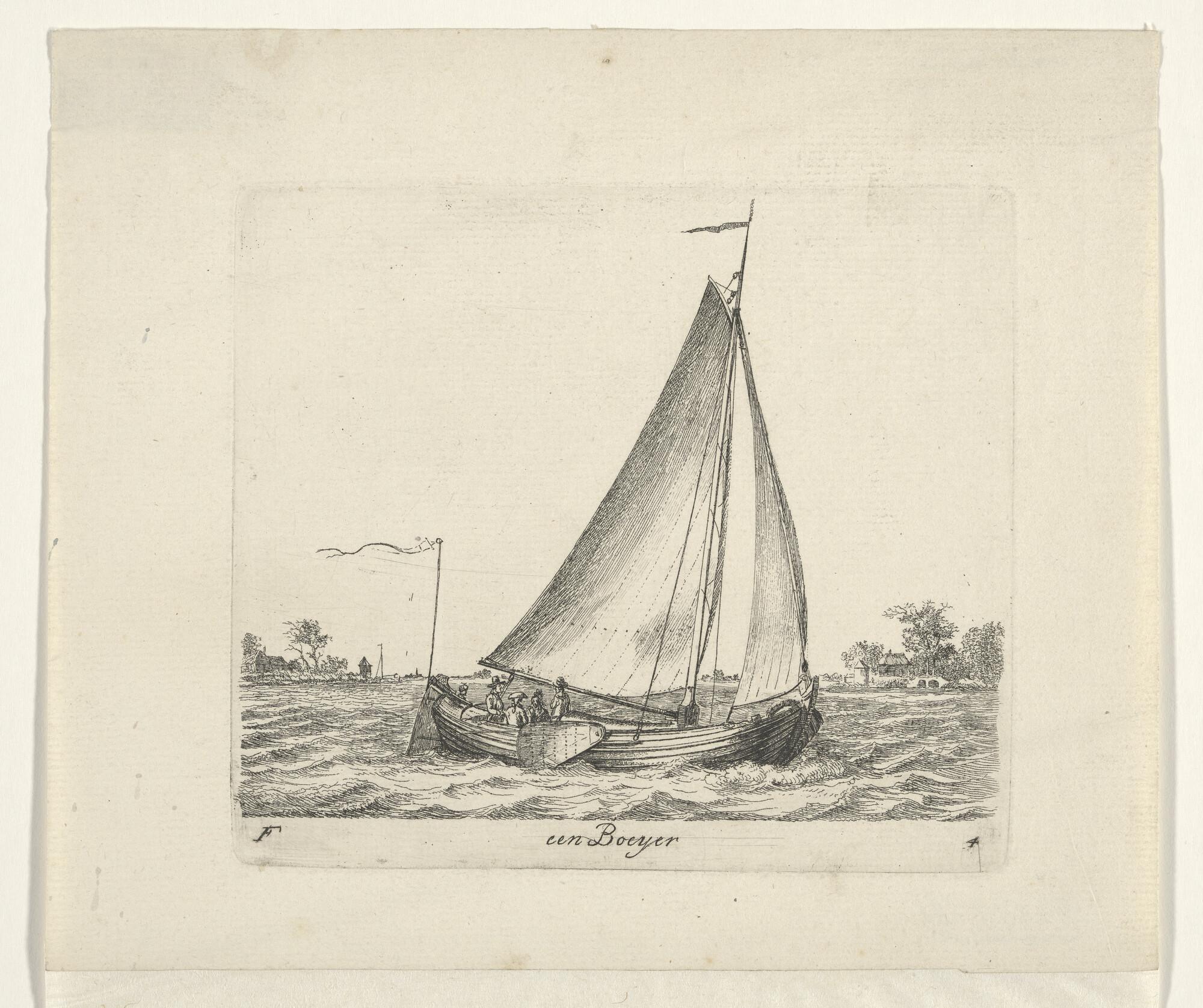 Een paviljoenpoon en een sloep droogvallend in een h...