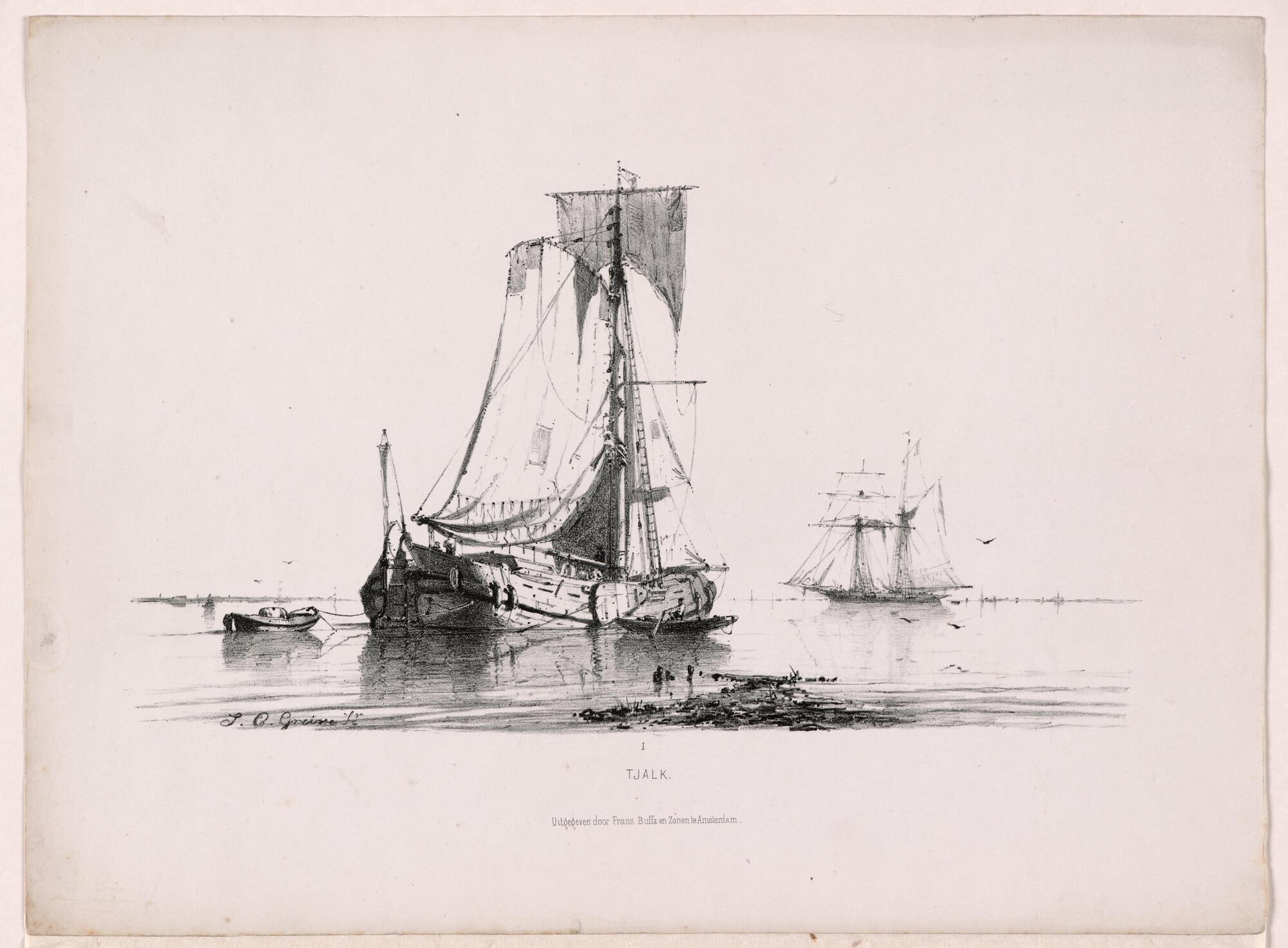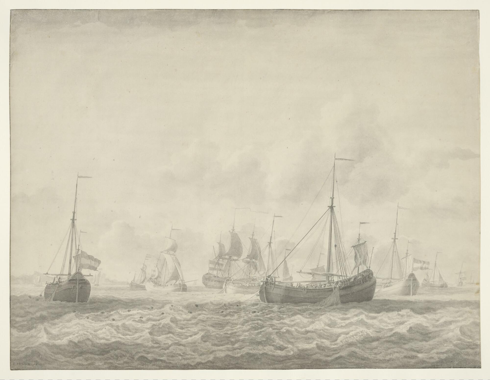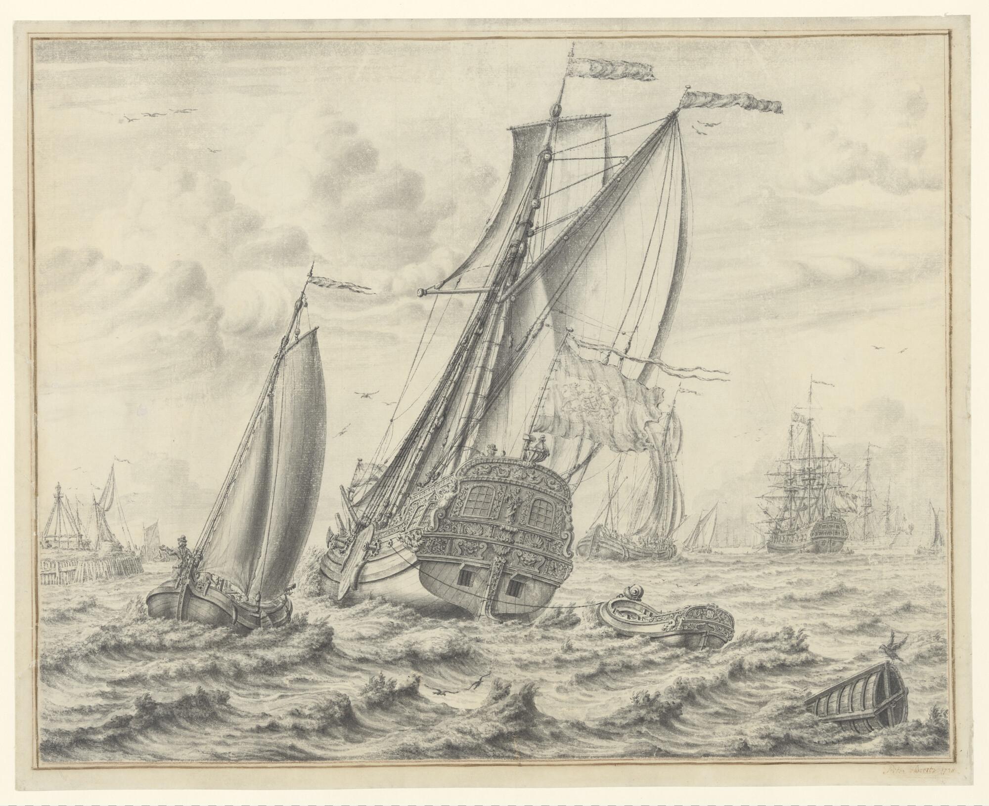 Een spiegeljacht van de VOC op de rede van Hoorn
