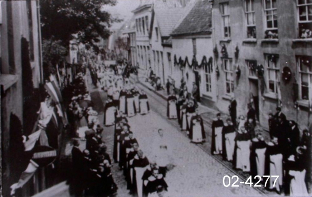De paters trekken door Huissen stad in de Langestraa...