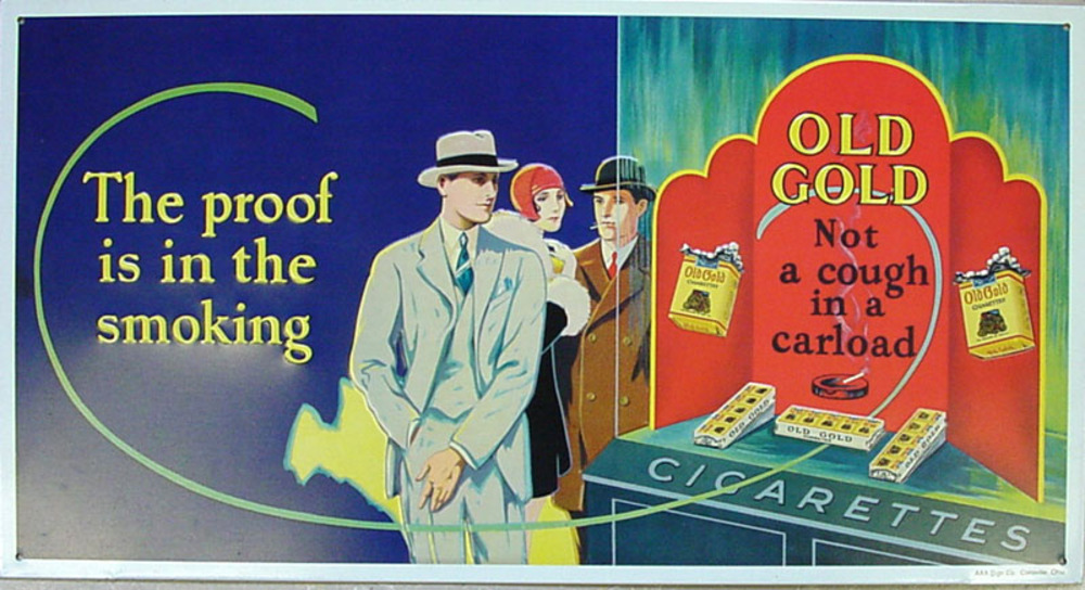 Reclamebord van metaal voorstellende drie personen v...
