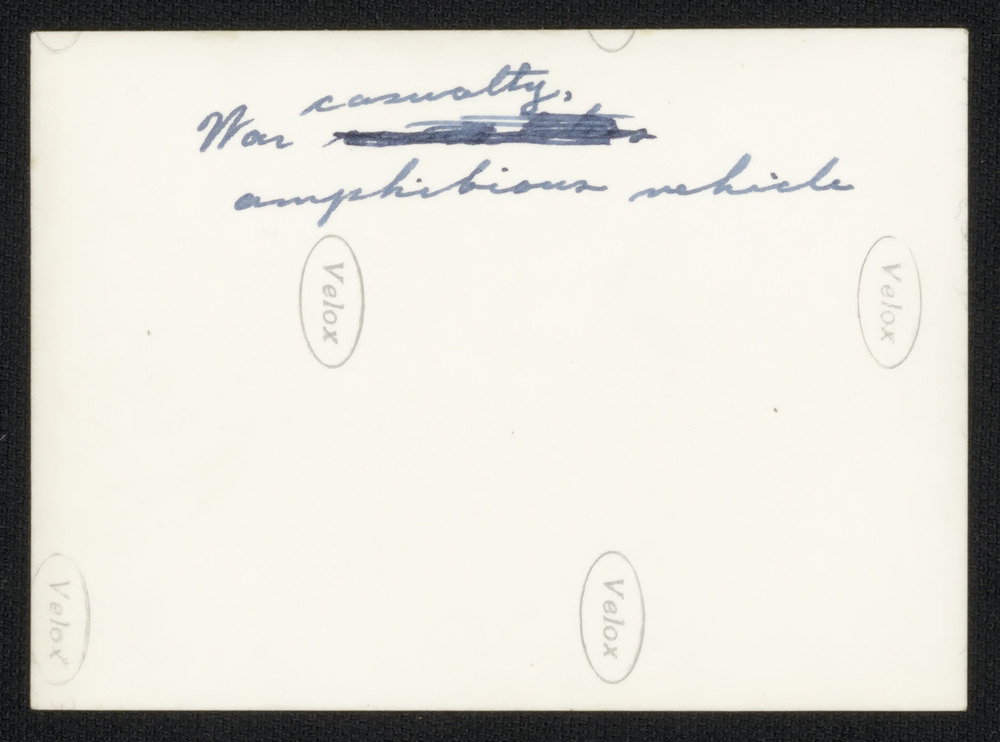 Zwart-wit foto van personeel en een autobus van de L...