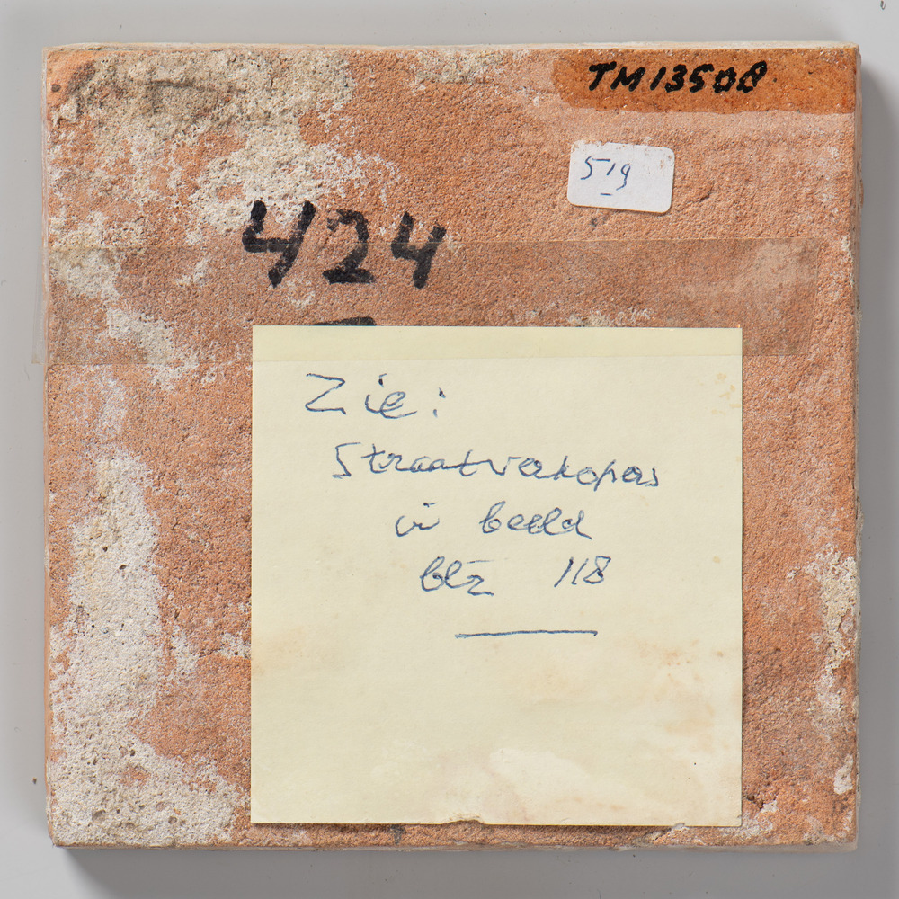 randtegel van keramiek met tinglazuur, voorstellende...
