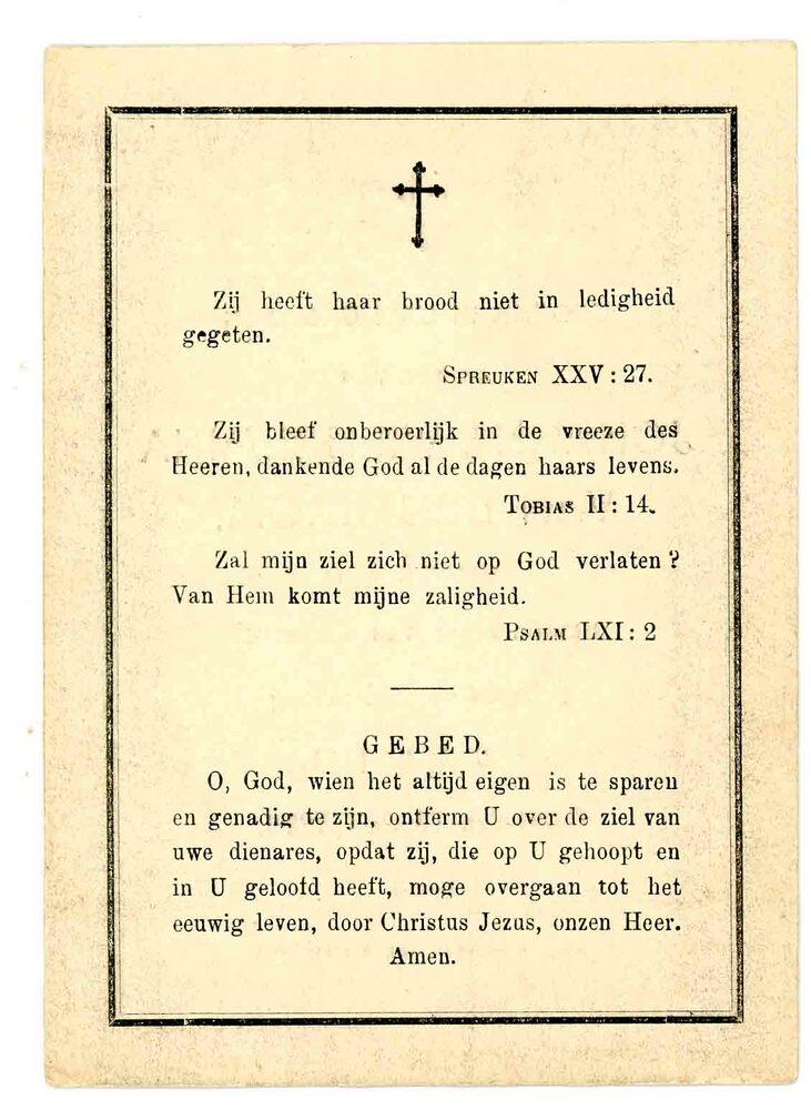 bidprent voor Johanna Wilhelmina van Beusekom. Gebor...