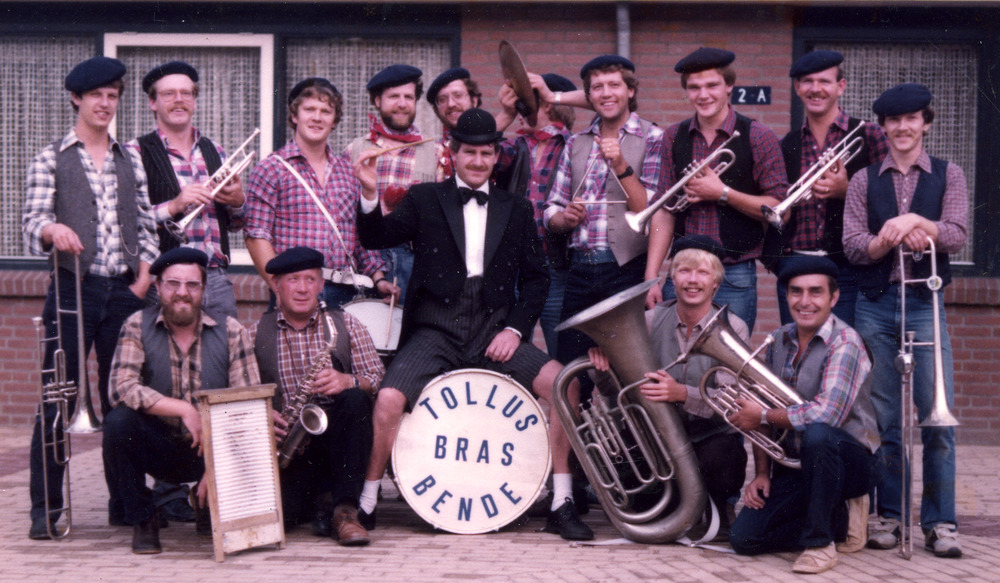 Kleurenfoto van het dweilorkest de Tollus Bras Bende...