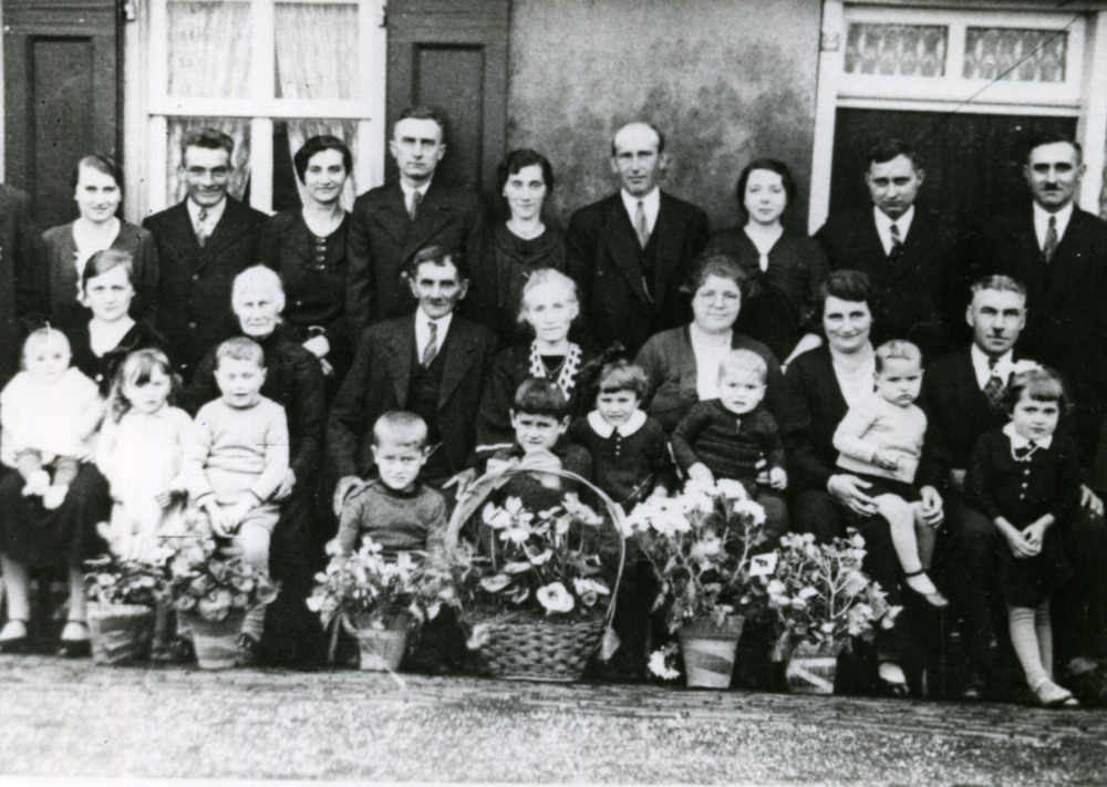 Zwart-wit foto van de familie Rietbergen in Herwen c...