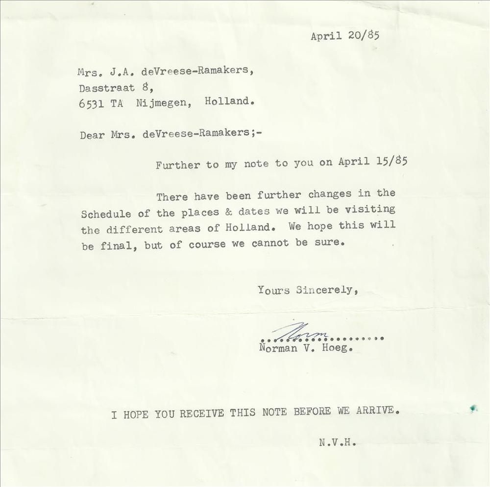 Handgeschreven afschrift van brief van J. v/d Heuvel...