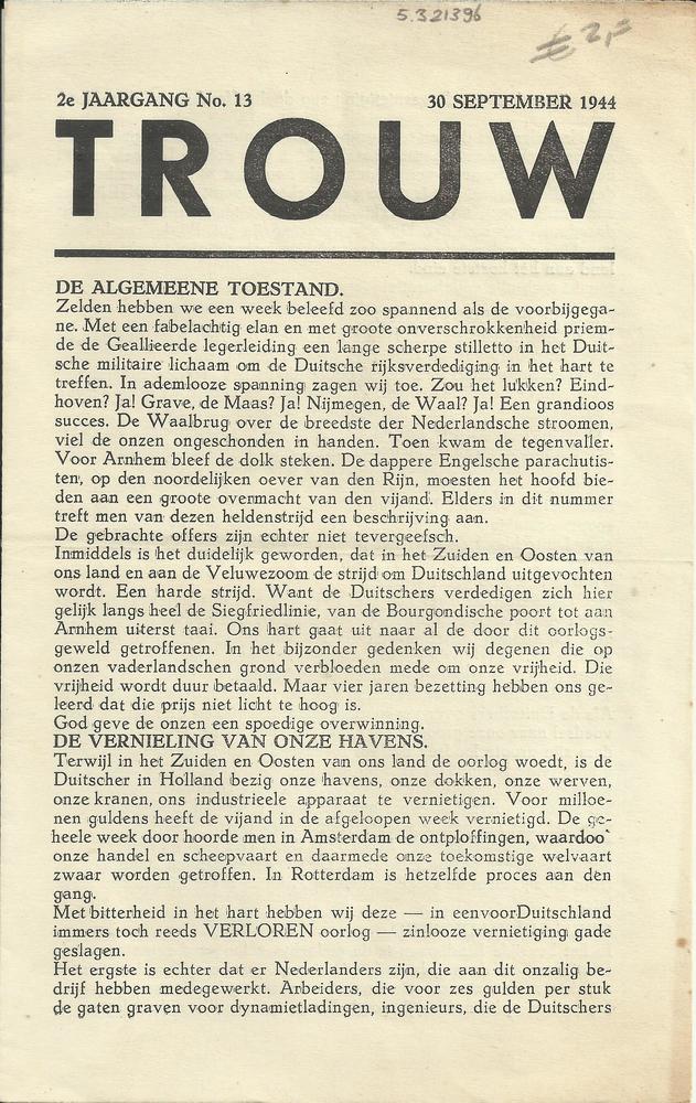 Trouw, 30 september 1944. 2e jaargang No. 13