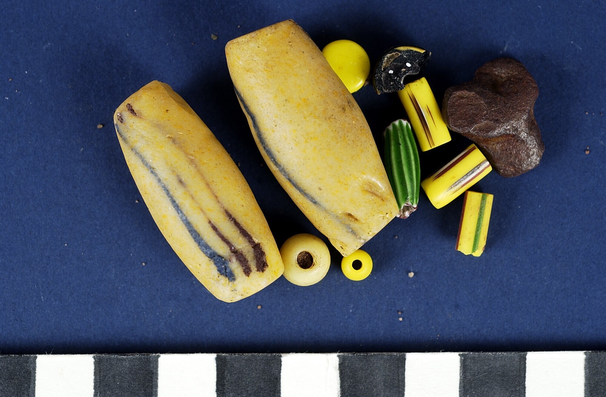 Twee potkralen, zeven kralen, fragmenten van kralen ...