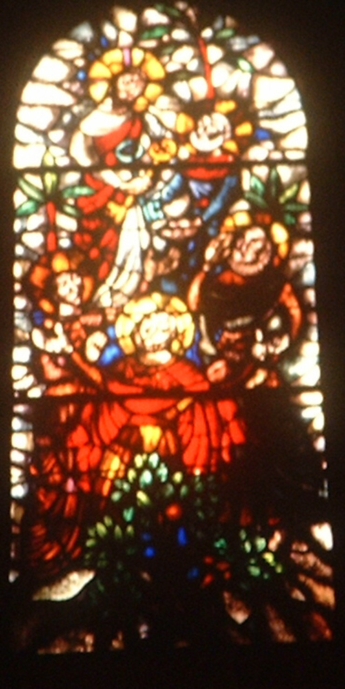 Glasraam in de Huissense stadskerk.De zending van de...