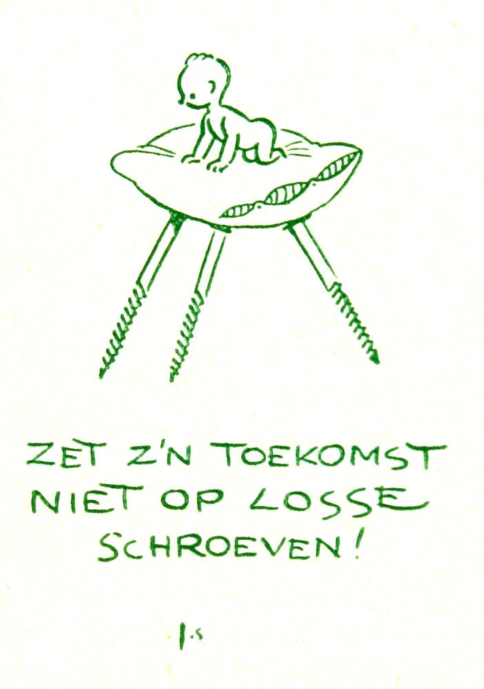 Illustratie van baby op kussen met schroeven door Jo...