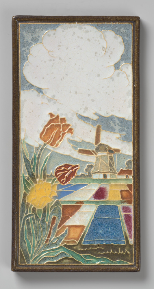 Tegel in cloisonné-techniek, met voorstelling: tulpe...