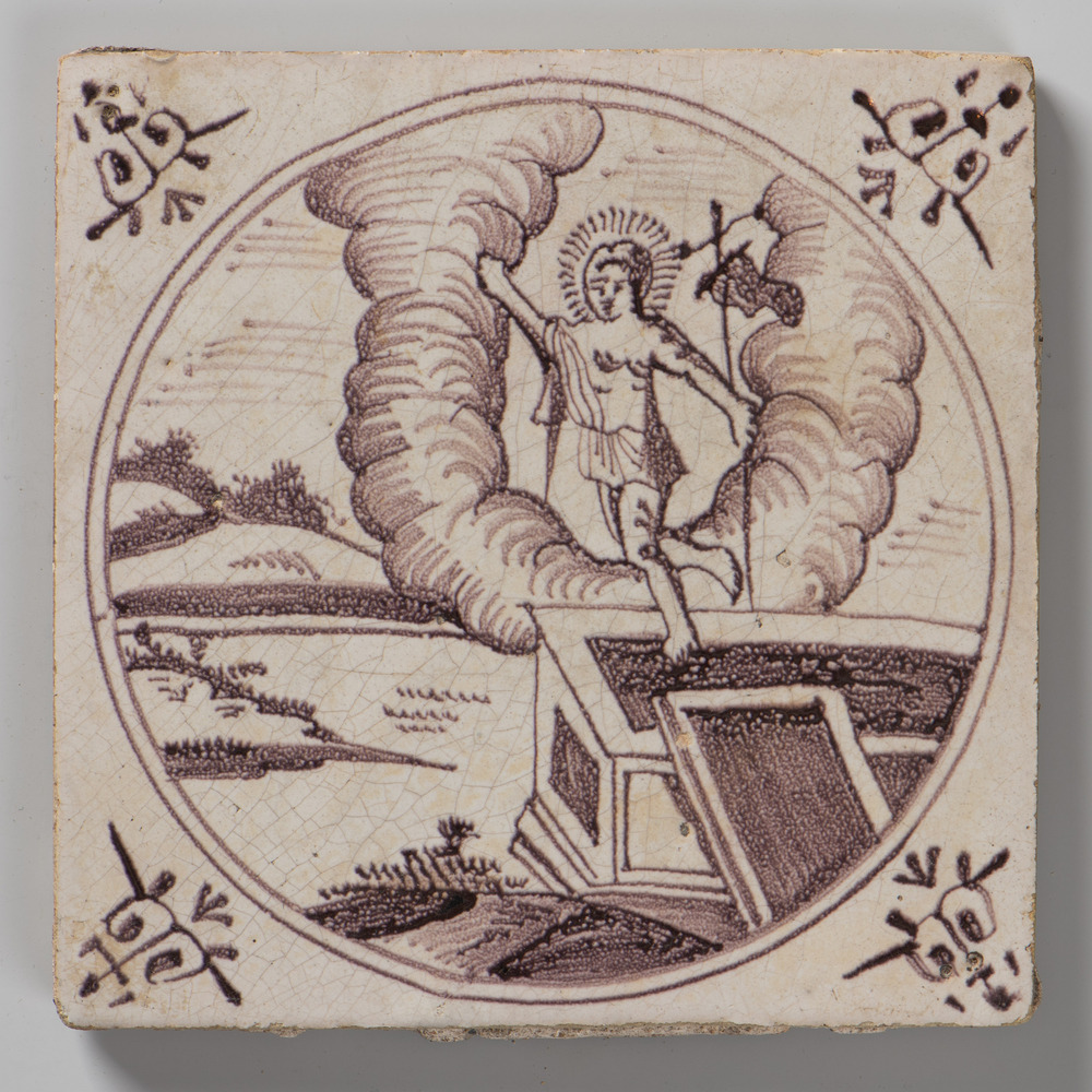 Tegel van keramiek met tinglazuur, voorstellende: or...