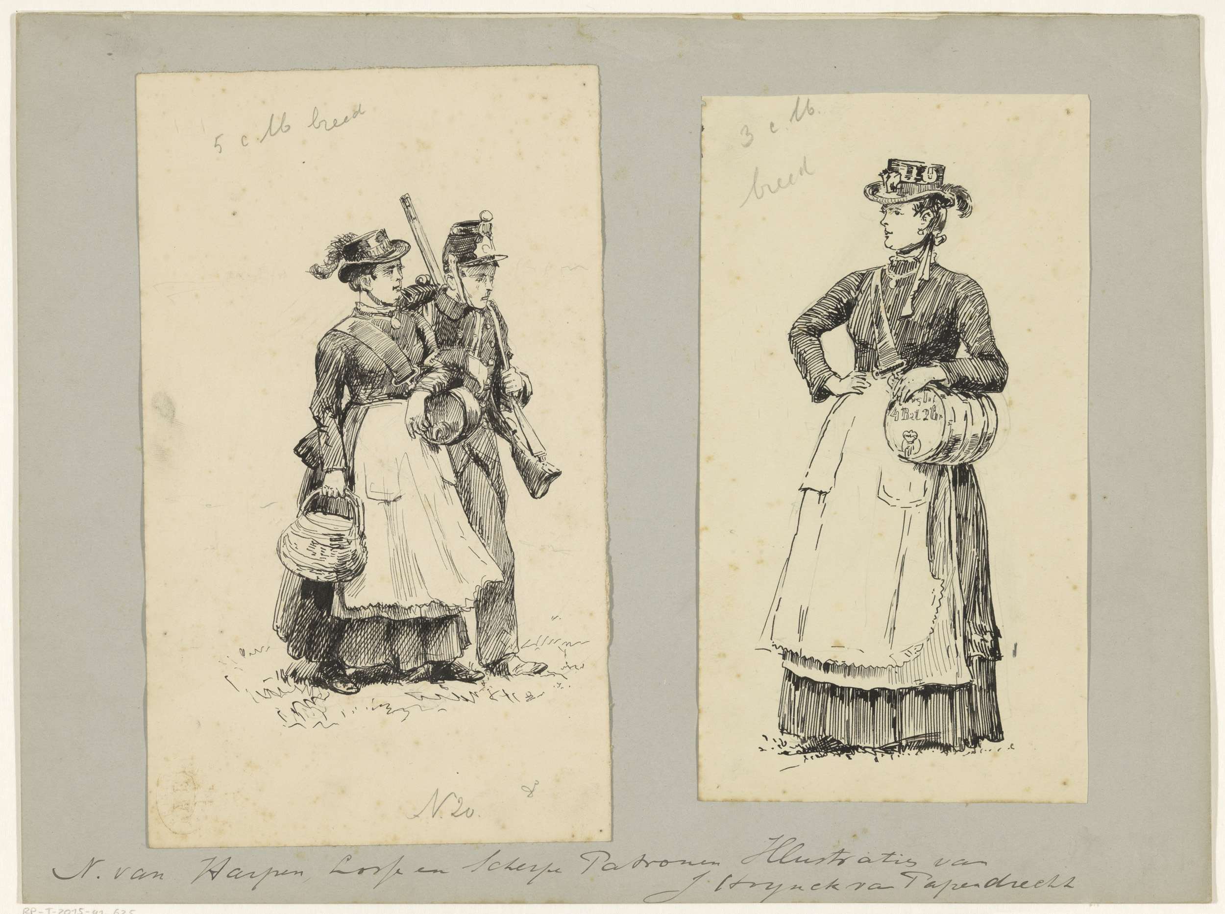Militair en een vrouw met een mand en vat