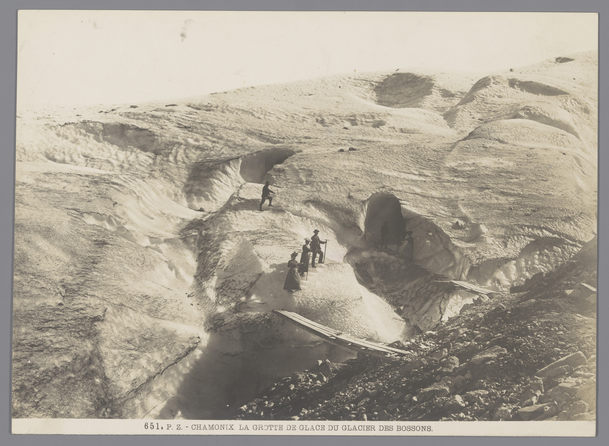 Wandelaars op de Bossonsgletsjer in Chamonix