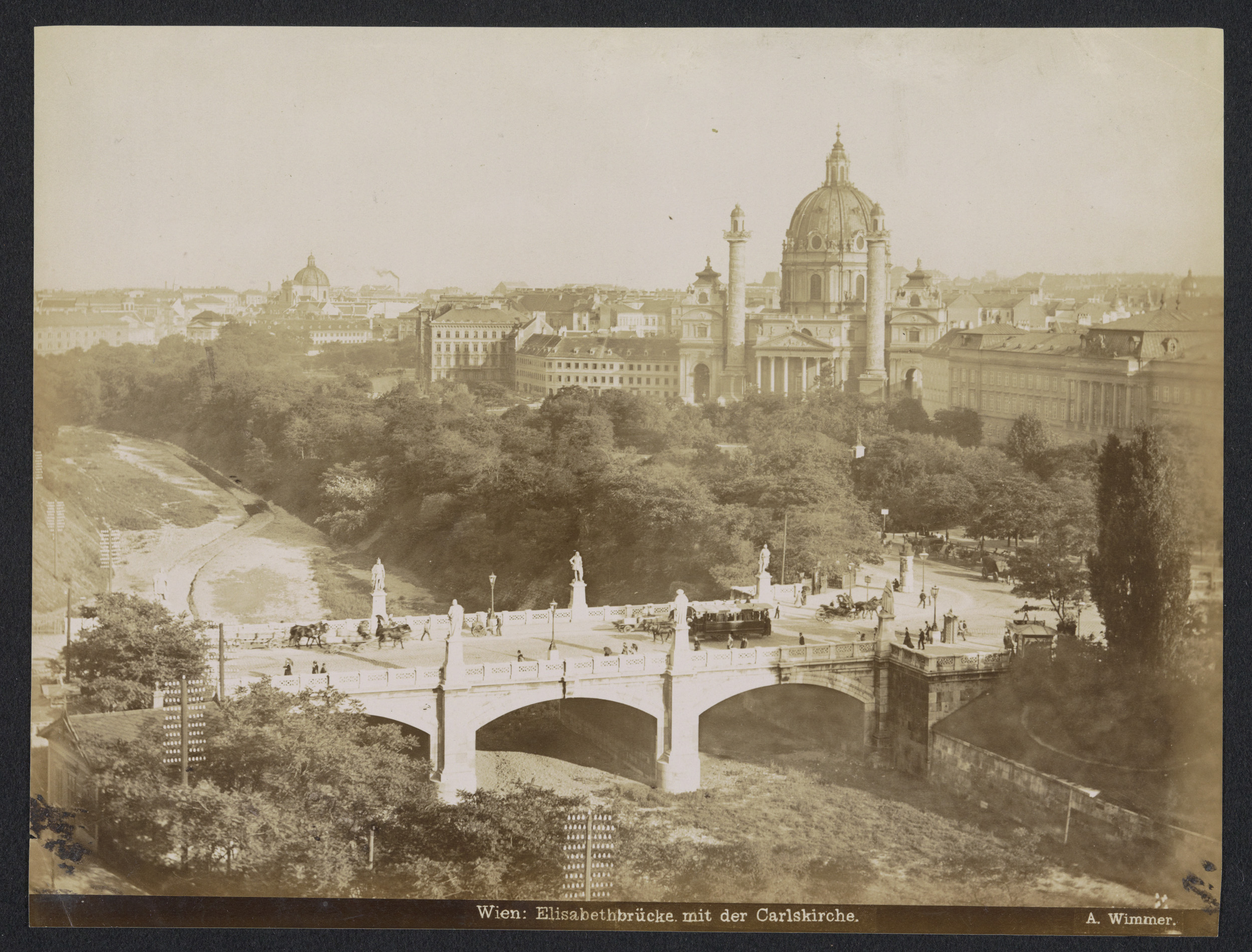Gezicht op de Elisabethbrücke en de Karlskirche in W...