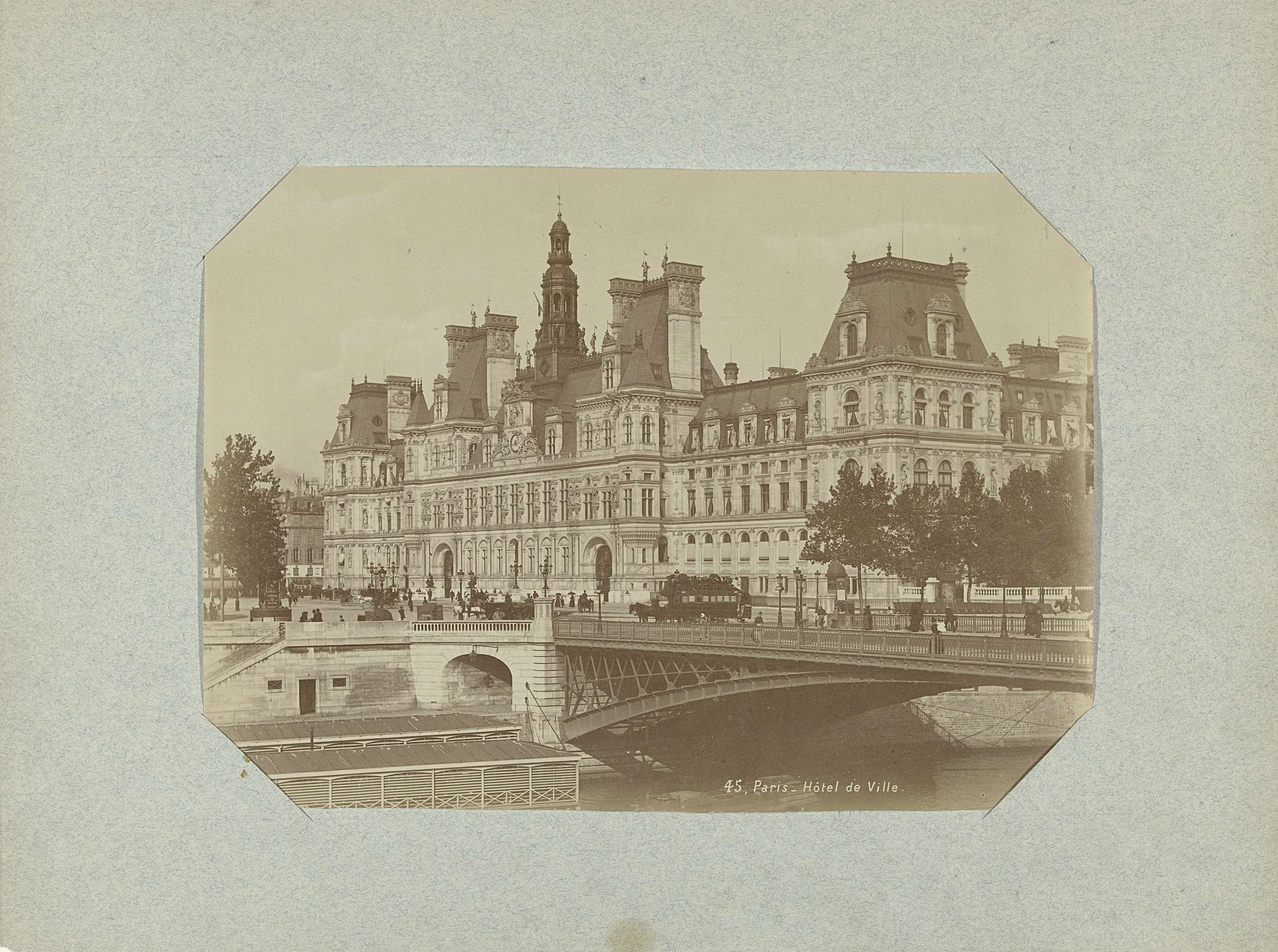 Gezicht op het stadhuis van Parijs en de Pont d'Arco...