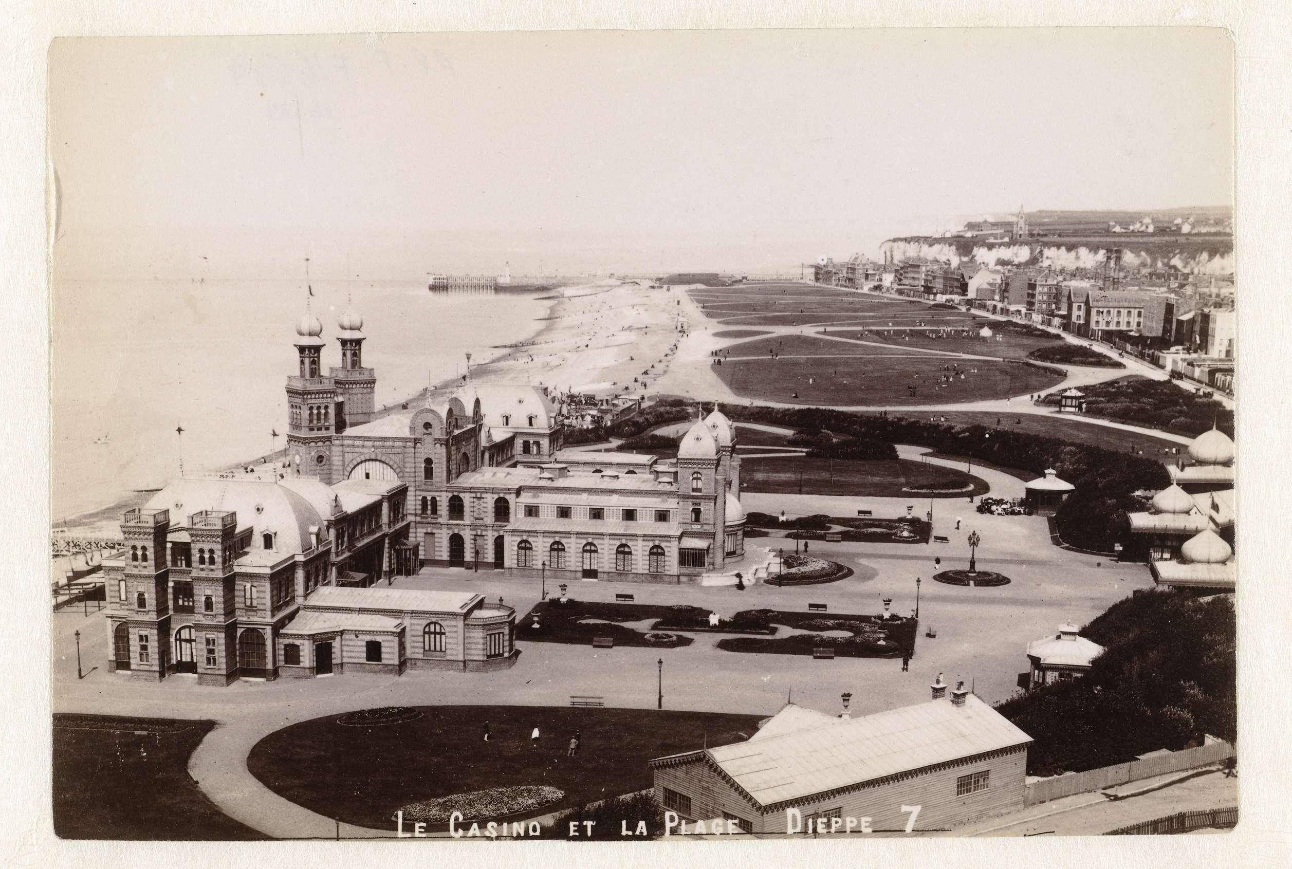 Gezicht op het strand en casino van Dieppe