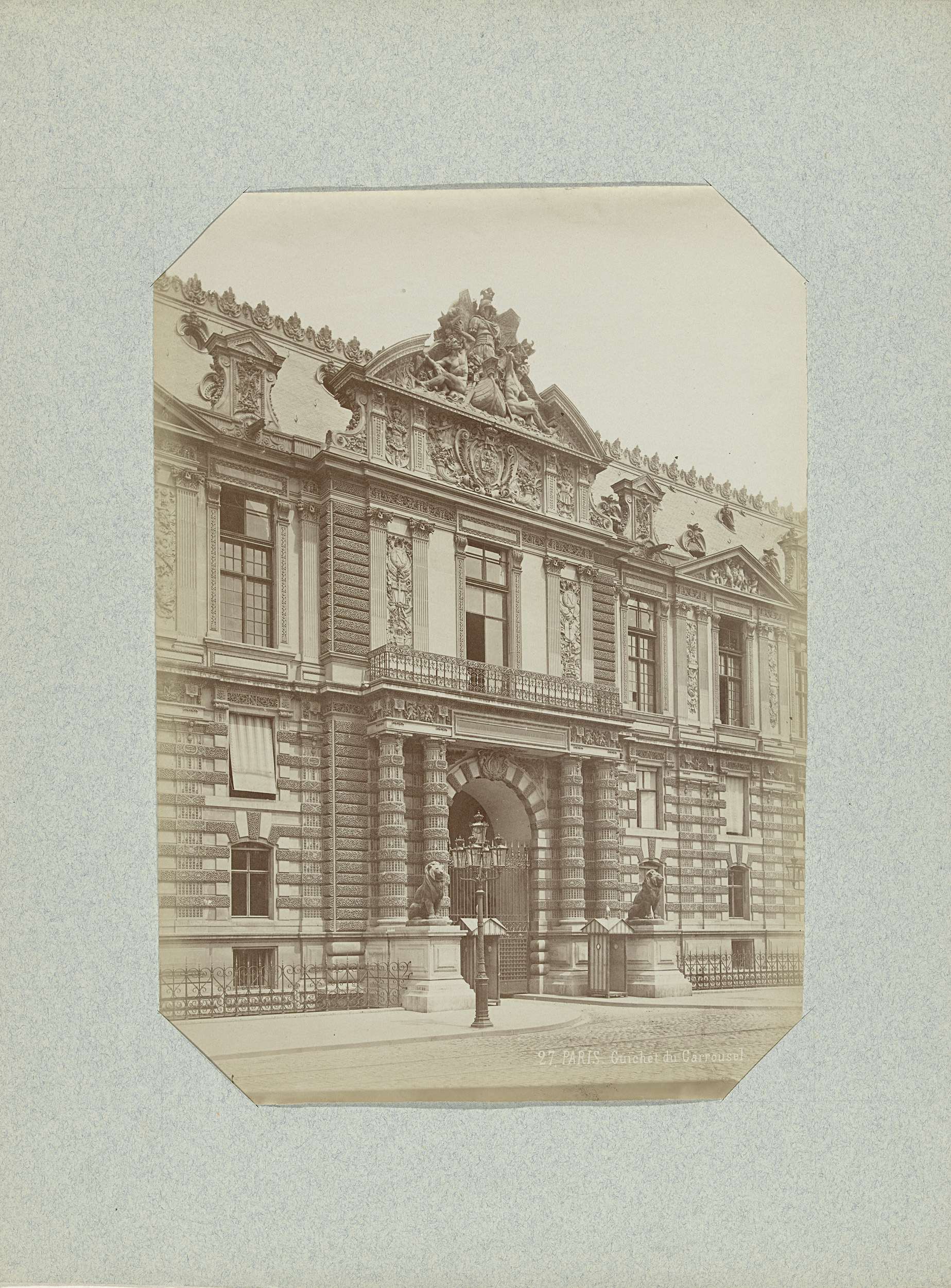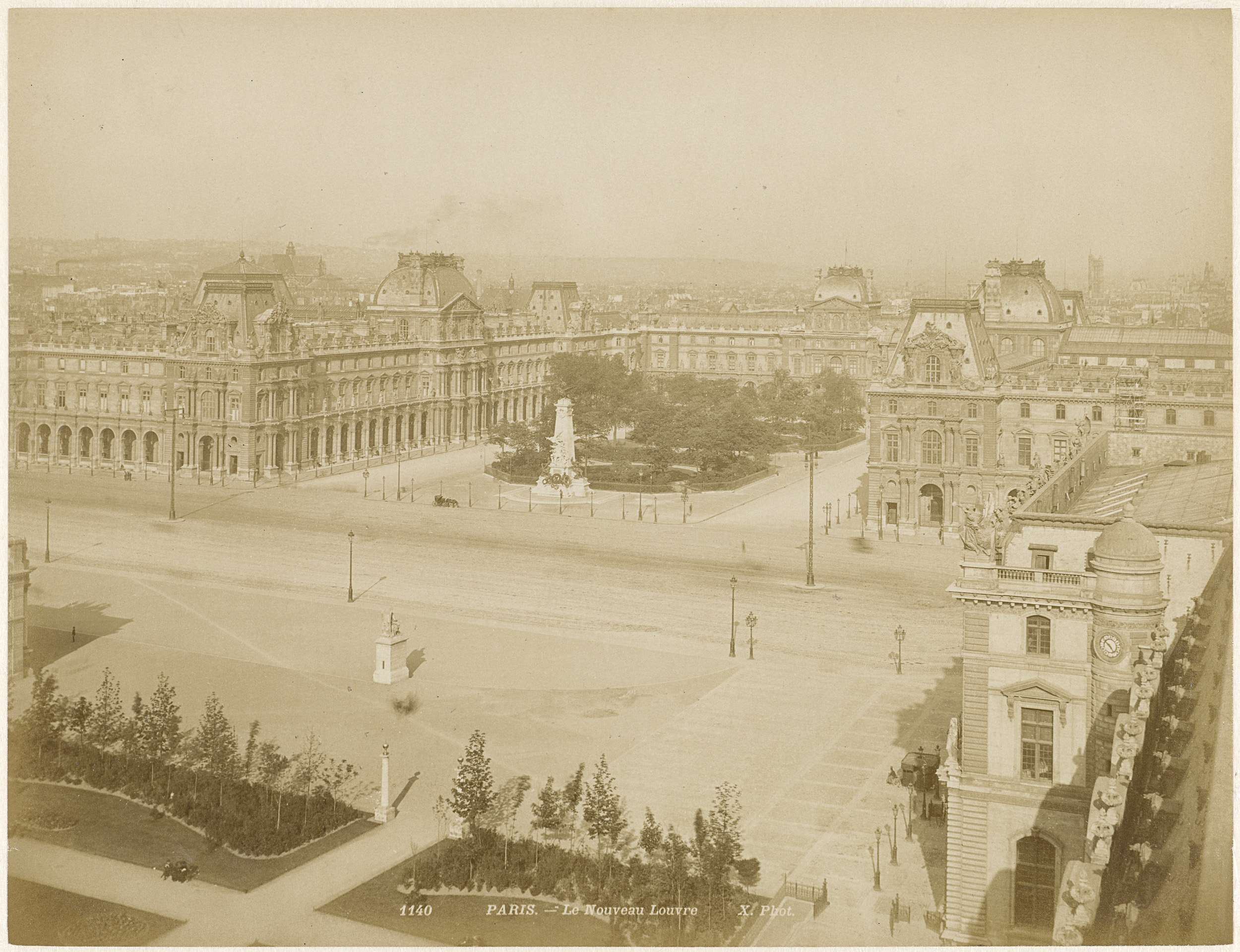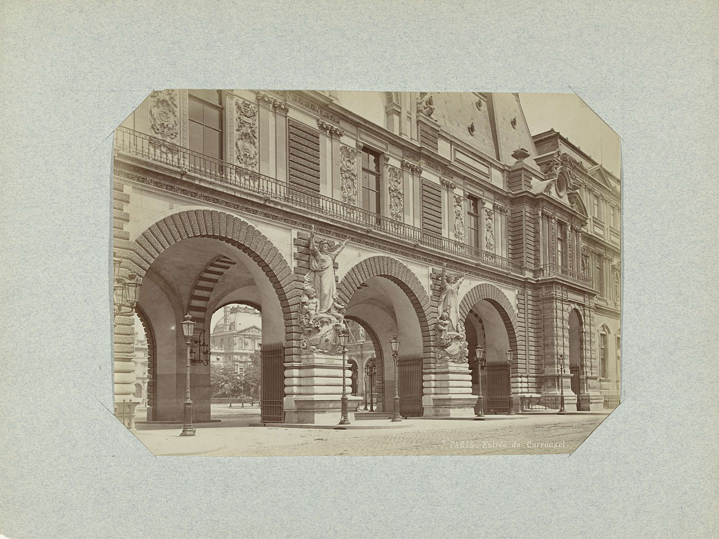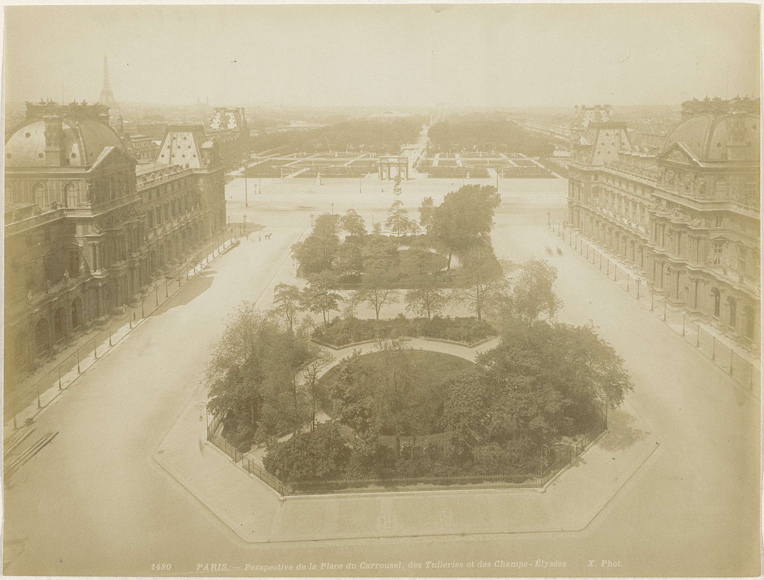 Gezicht op het Place du Caroussel vanuit het Louvre ...