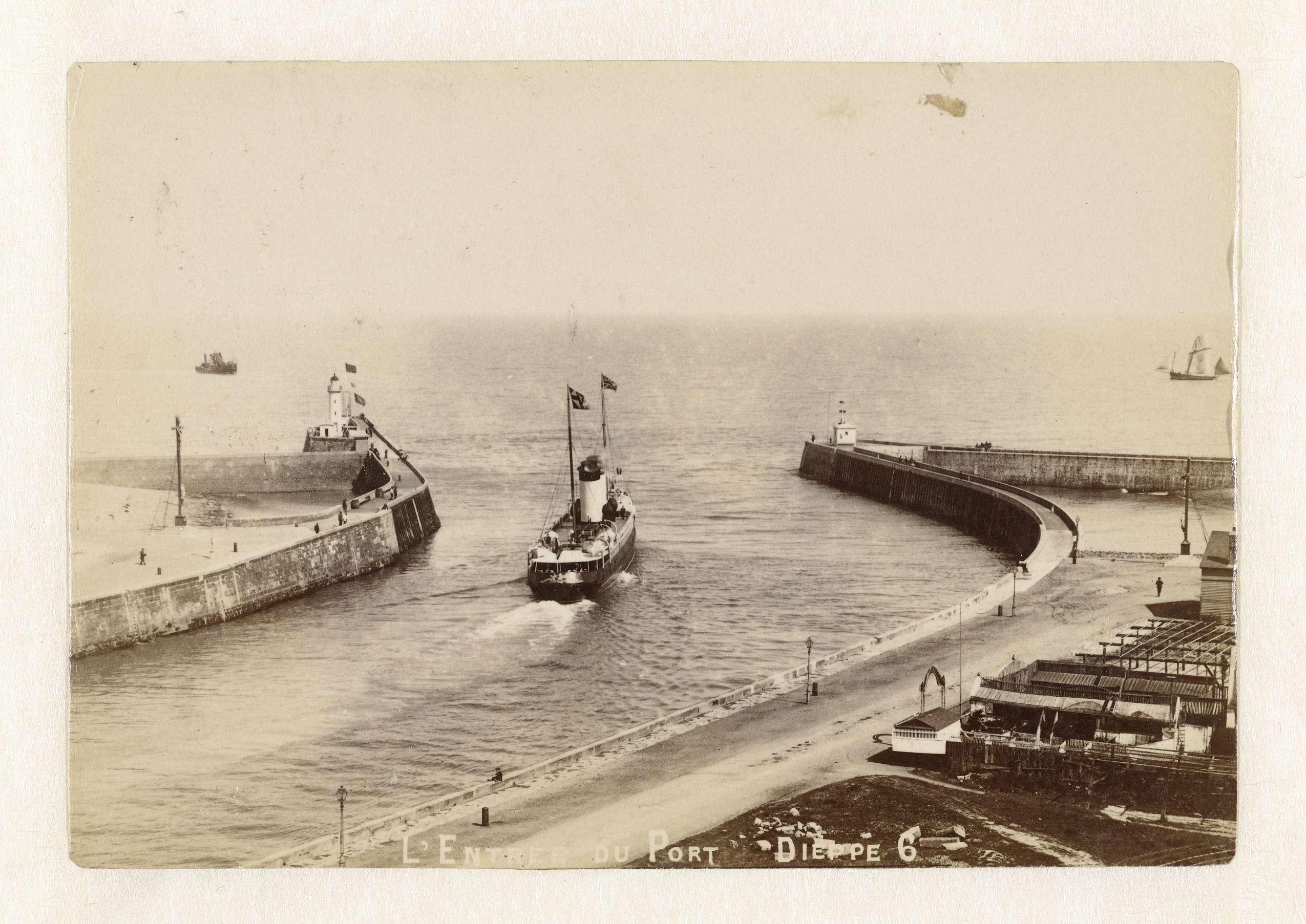 Stoomschip vaart de haven van Dieppe uit
