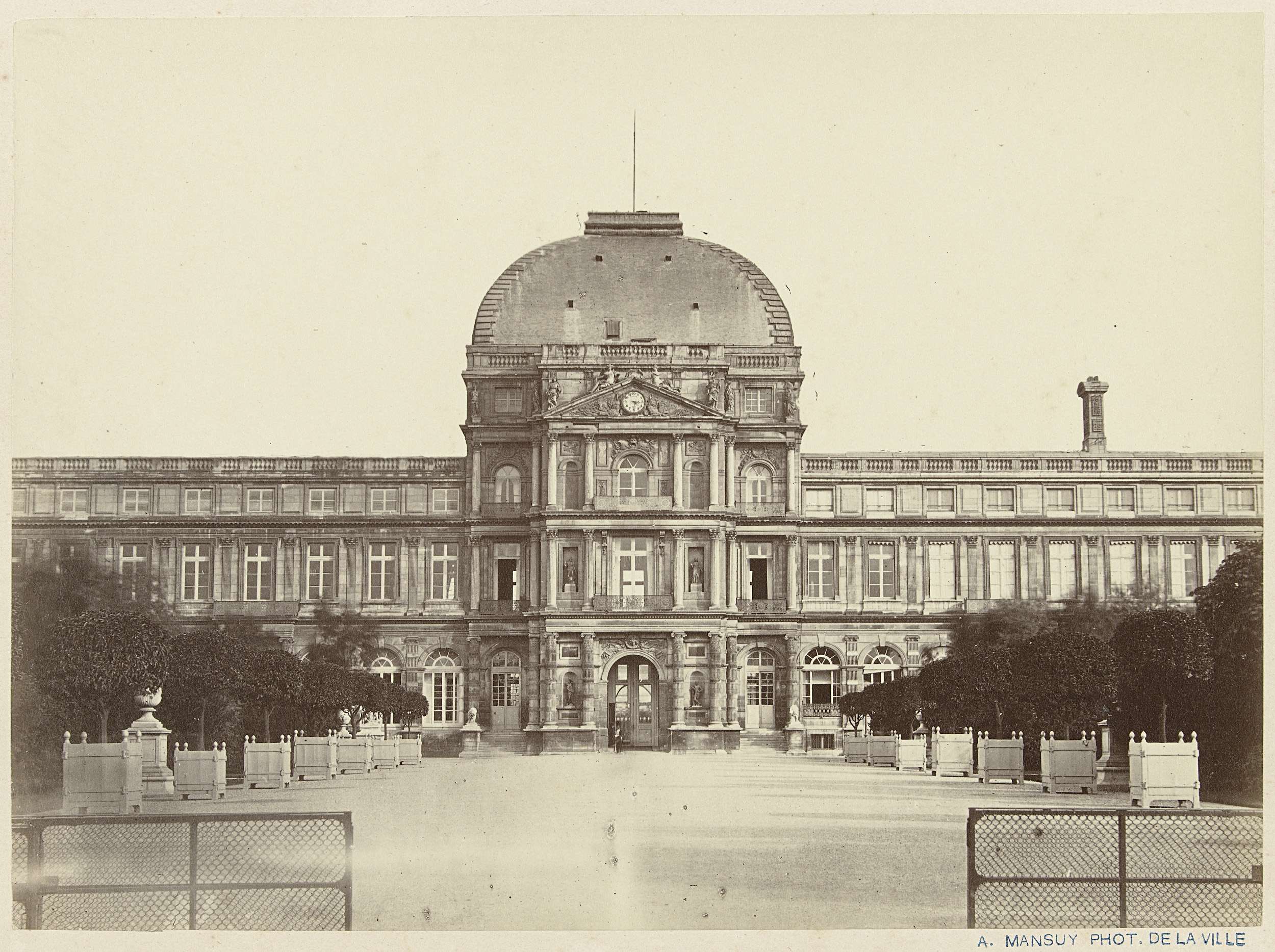Gezicht op het Louvre vanuit de Tuilerieën te Parijs