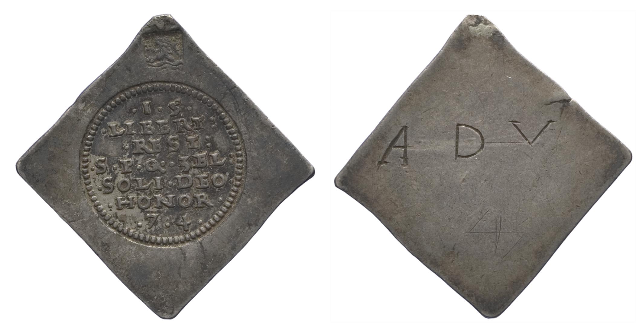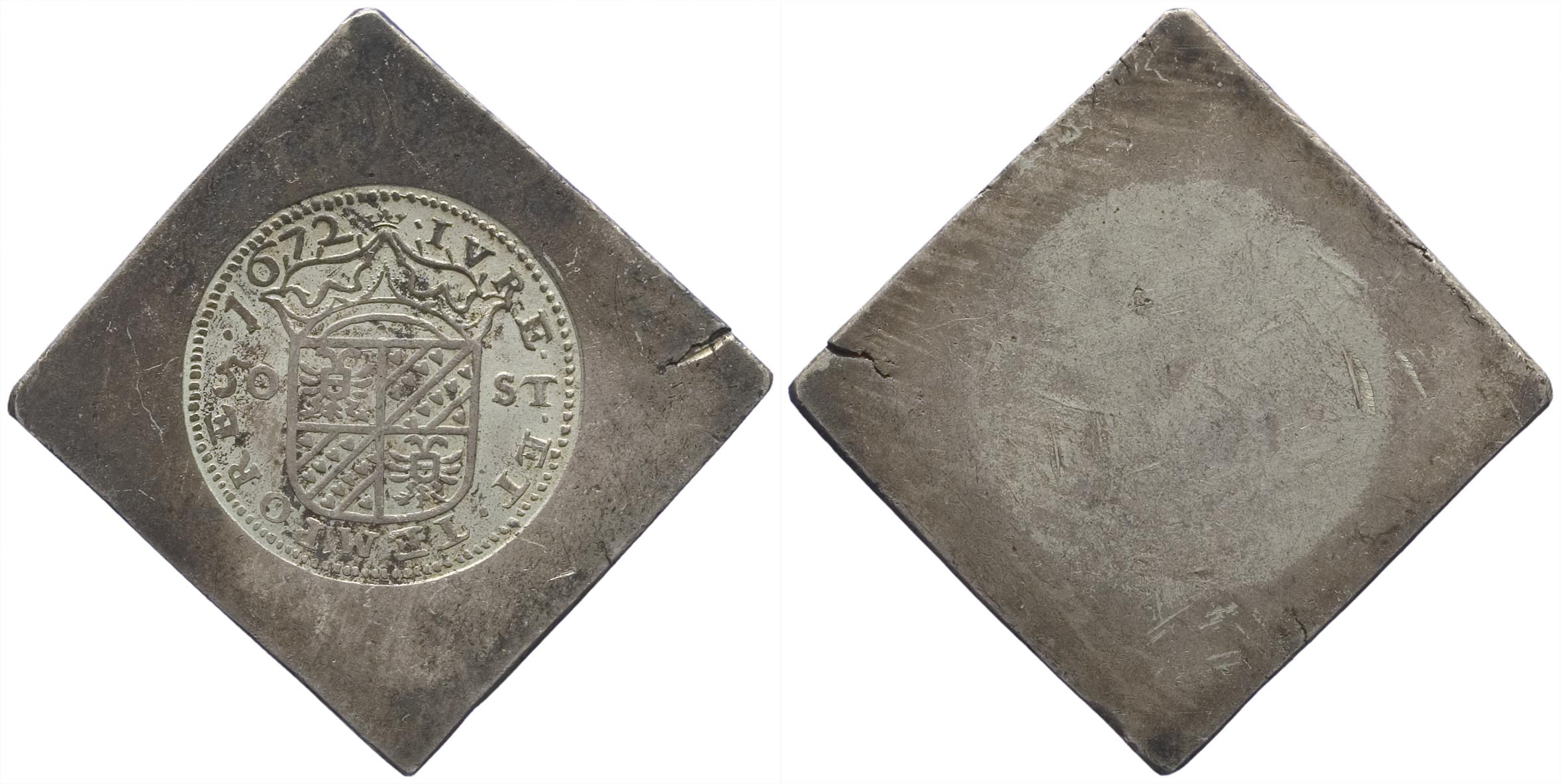 Vierkante noodmunt 1672