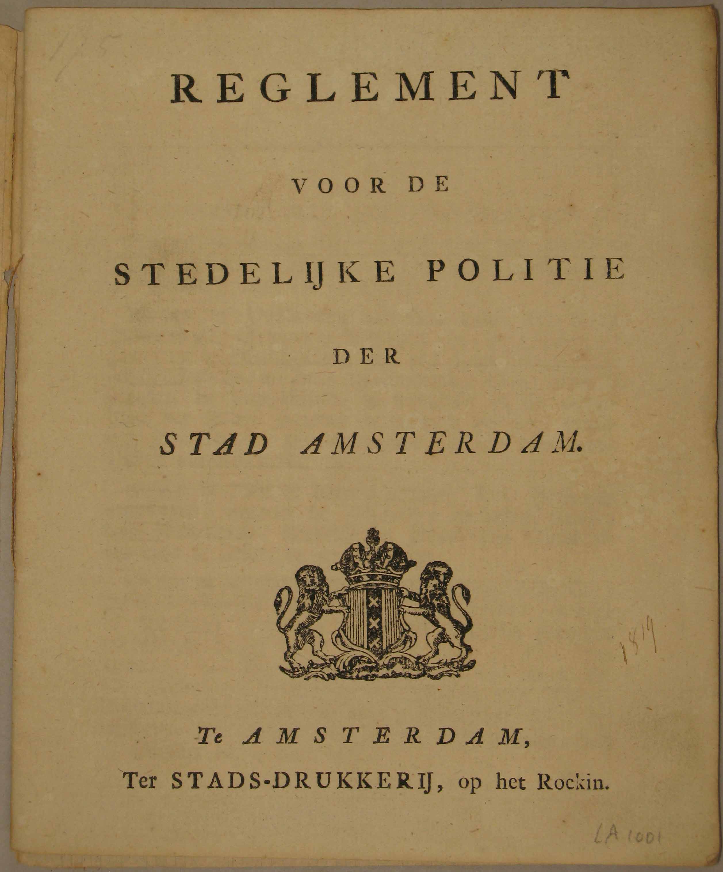 Reglement voor de stedelijke politie der stad Amster...
