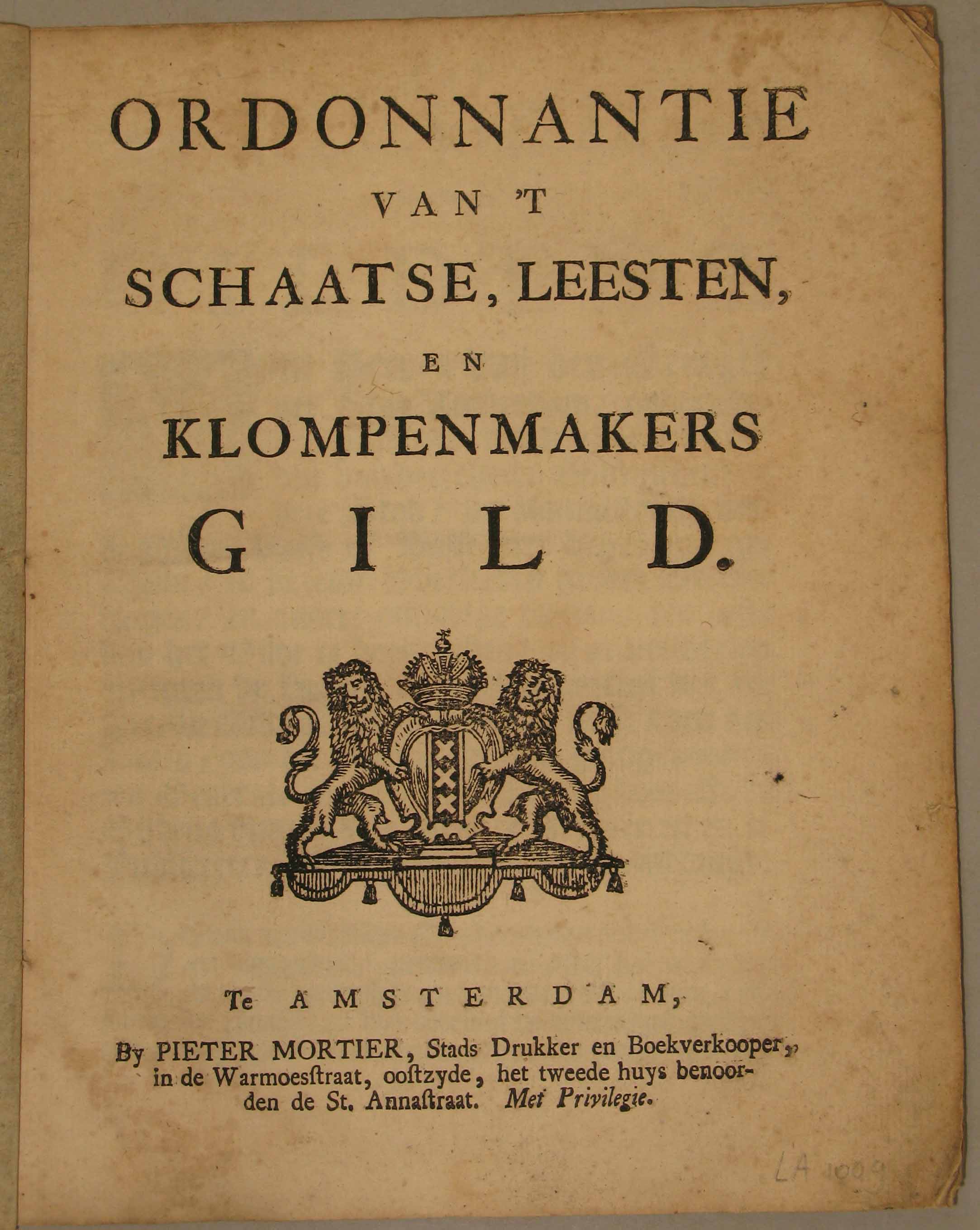 Ordonnantie van 't schaatse, leesten en klompenmaker...