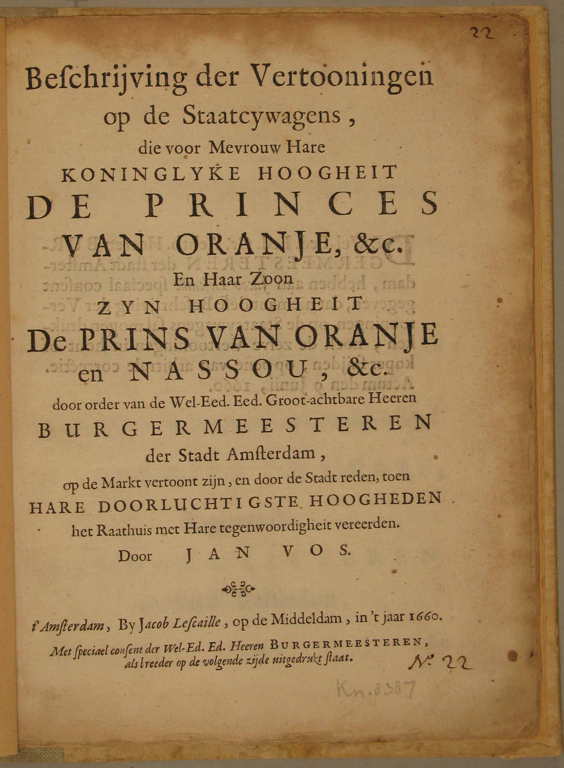 Beschrijving der Vertooningen op de Staatcy-wagens, ...