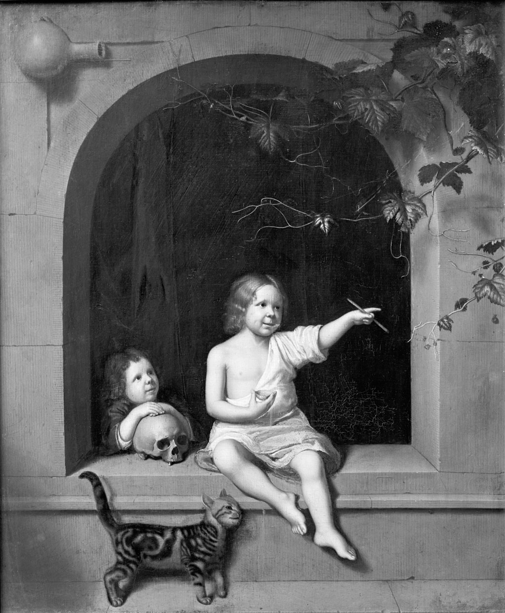 Twee kinderen in een stenen boognis