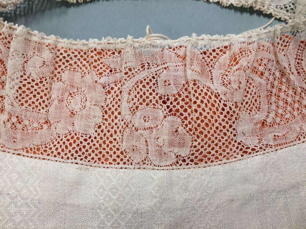 Witte ondermuts van grof linnen met kanten rand met ...