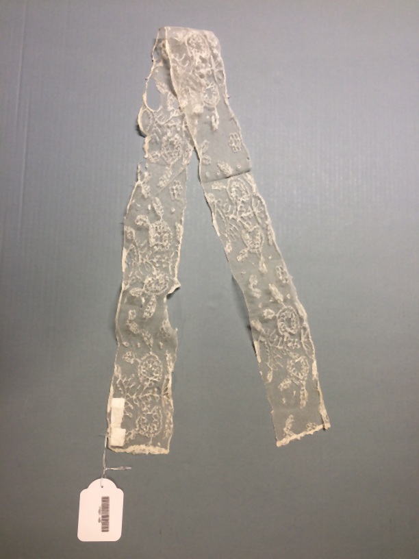 Wit neteldoek fichu, versierd met rand van bloemrank...