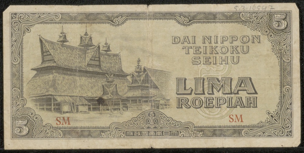Bankbiljet van 5 roepiah "Dai Nippon teikoku seihu",...