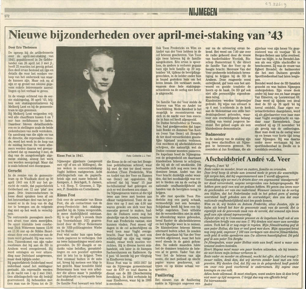 Nieuwe Bijzonderheden over april-mei staking van '43...