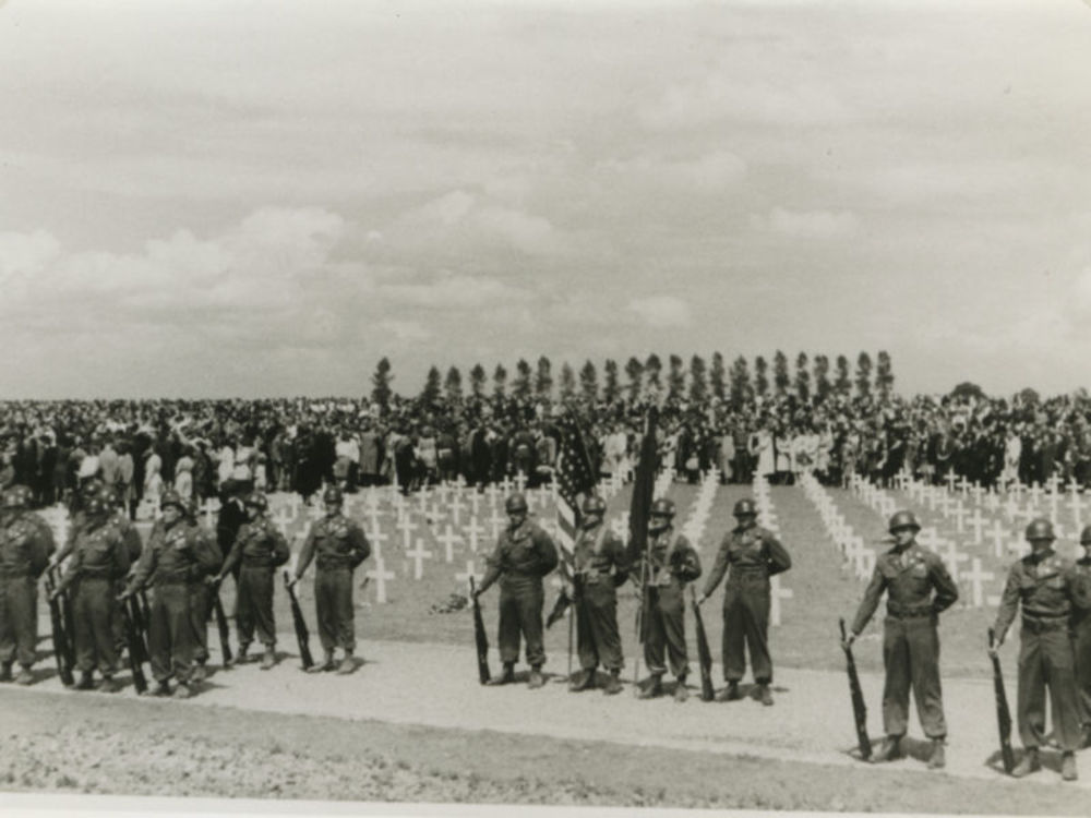 Foto van Amerikaanse erewacht op Amerikaanse begraaf...