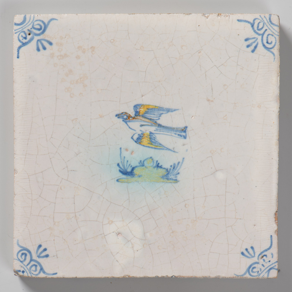 tegel van keramiek met tinglazuur, voorstellende: zw...