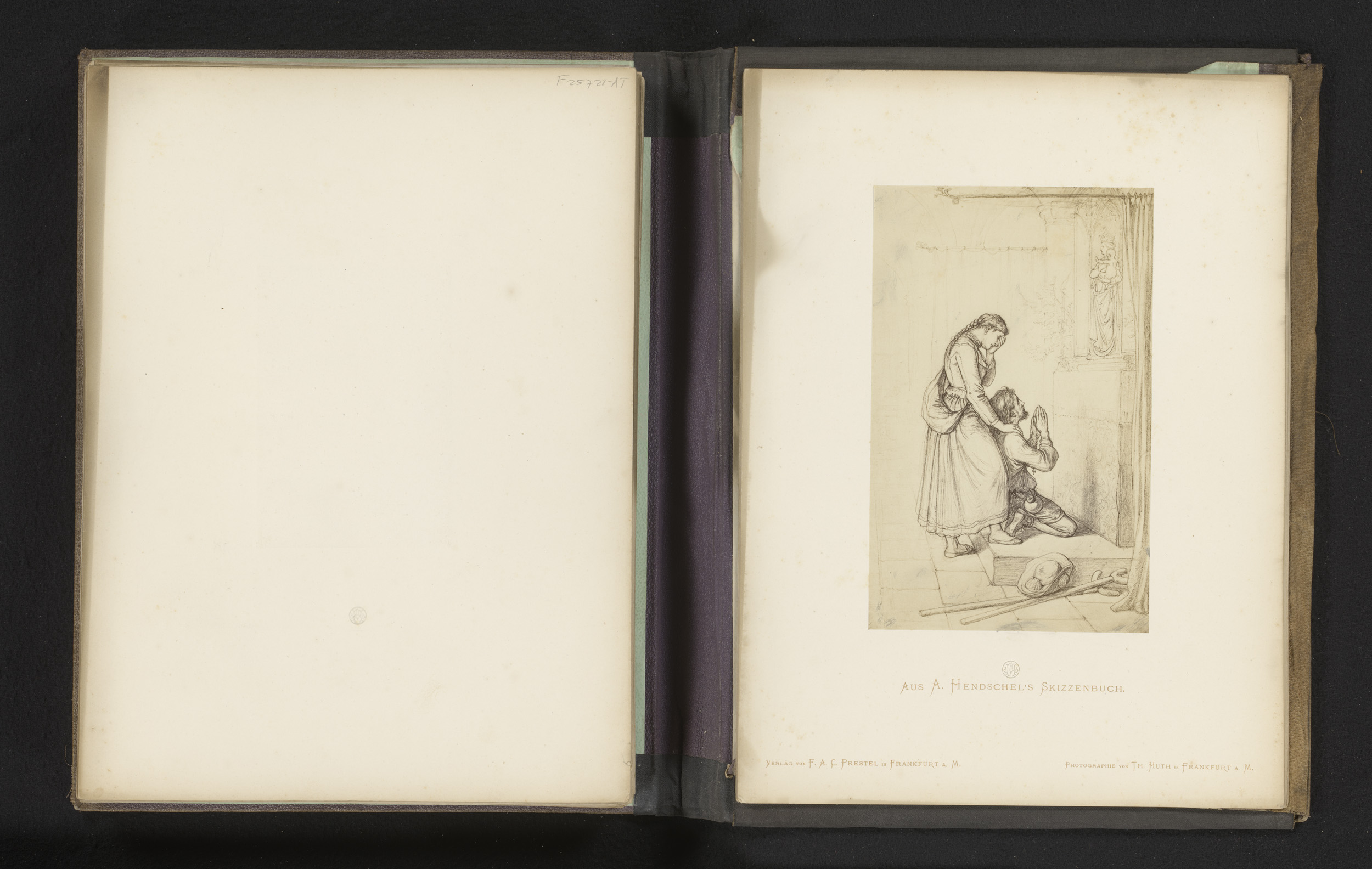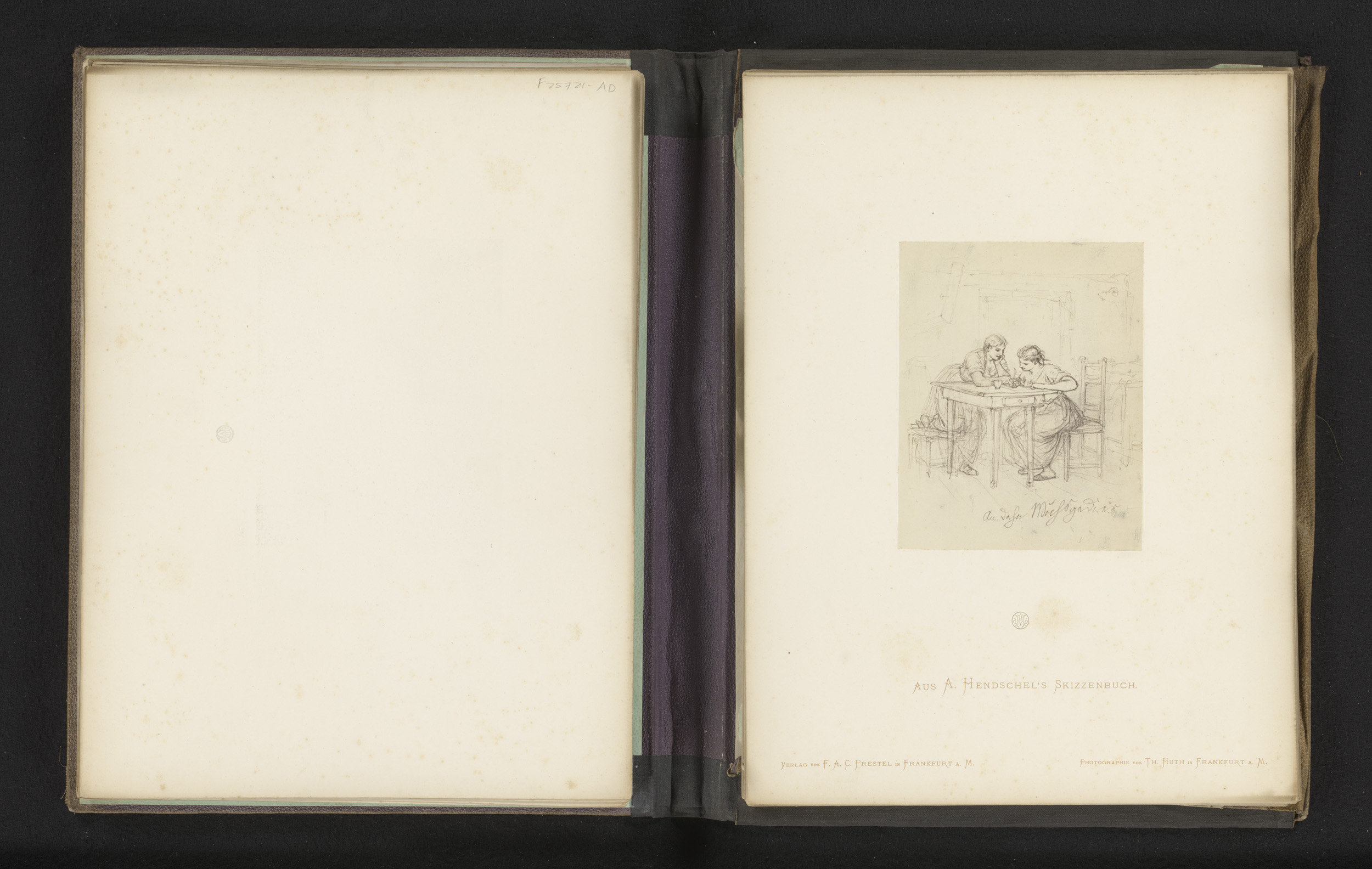 Fotoreproductie van een schets van twee vrouwen aan ...
