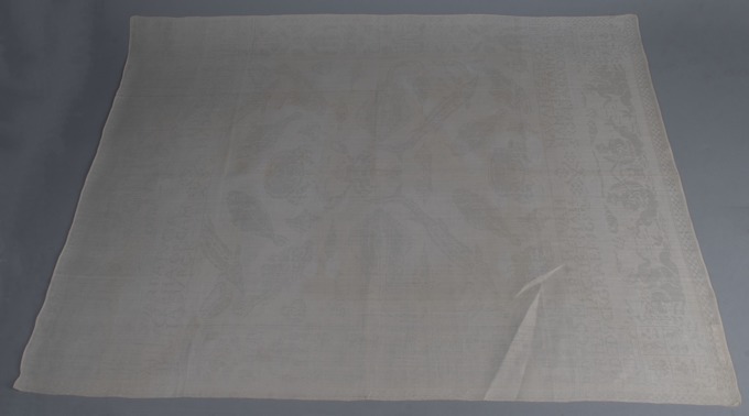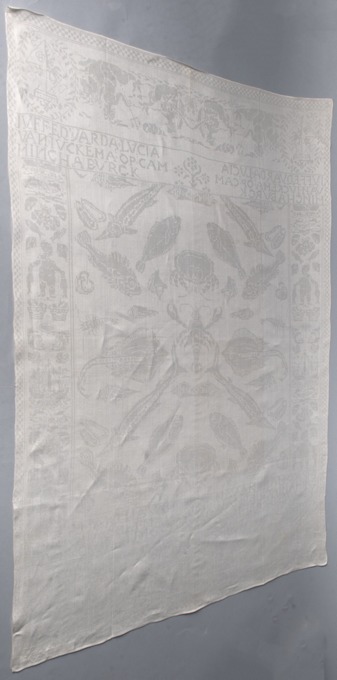 Damast tafellaken, in het midden vissenpatroon, de l...
