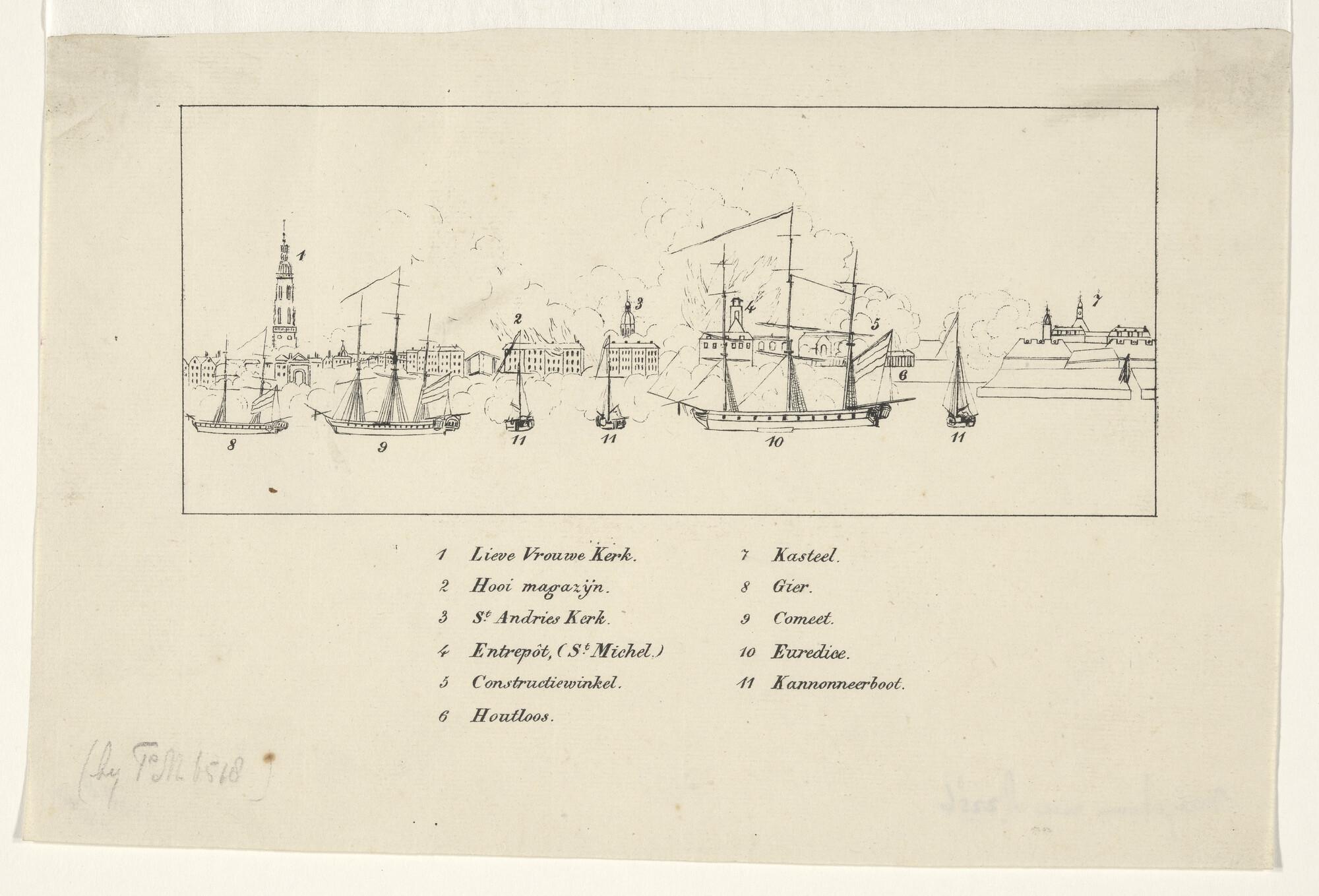 Kaart van het Sandvliet, de rivier de Schelde en Hul...