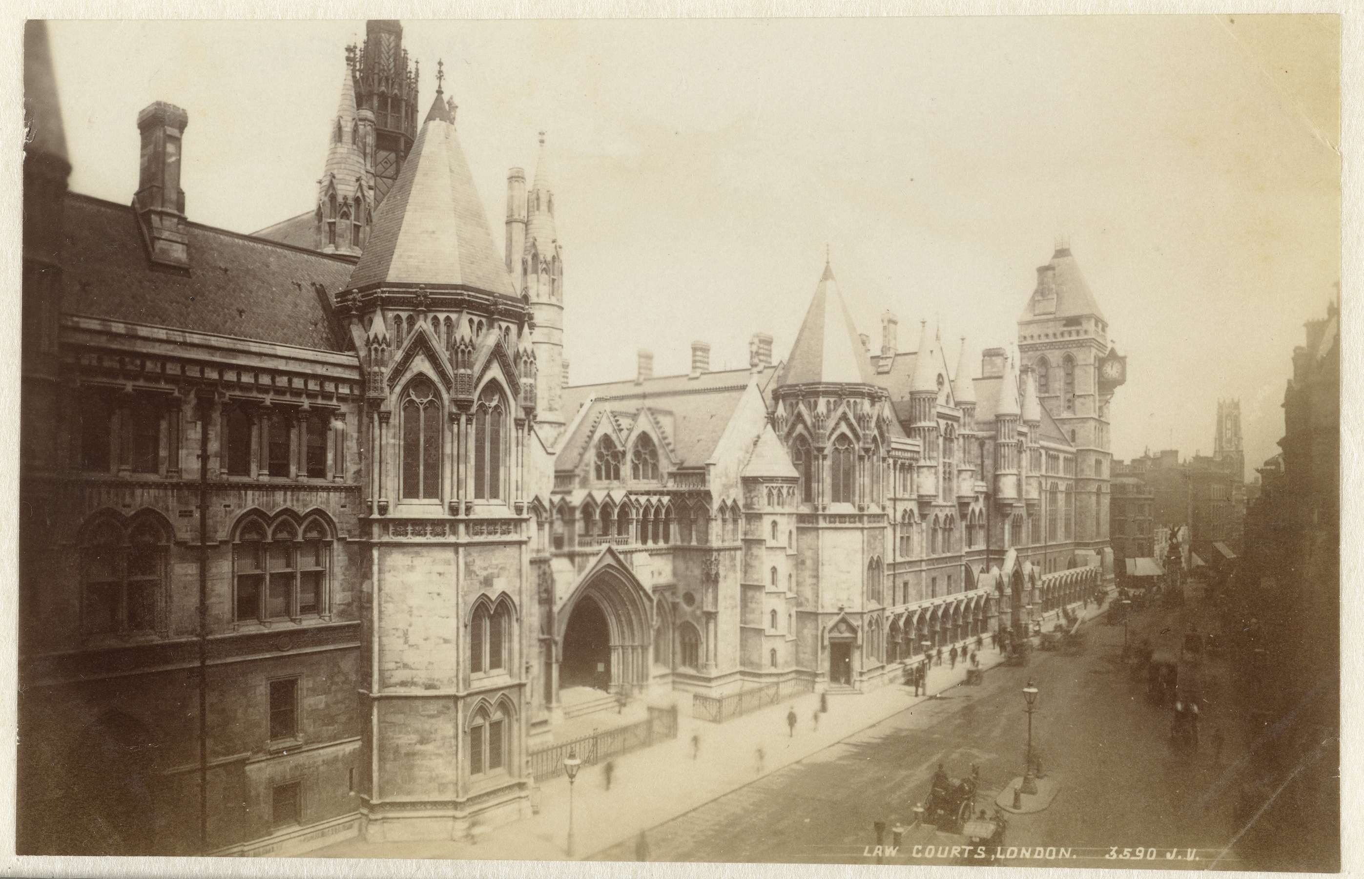 Gezicht op de Royal Courts of Justice aan Strand in ...