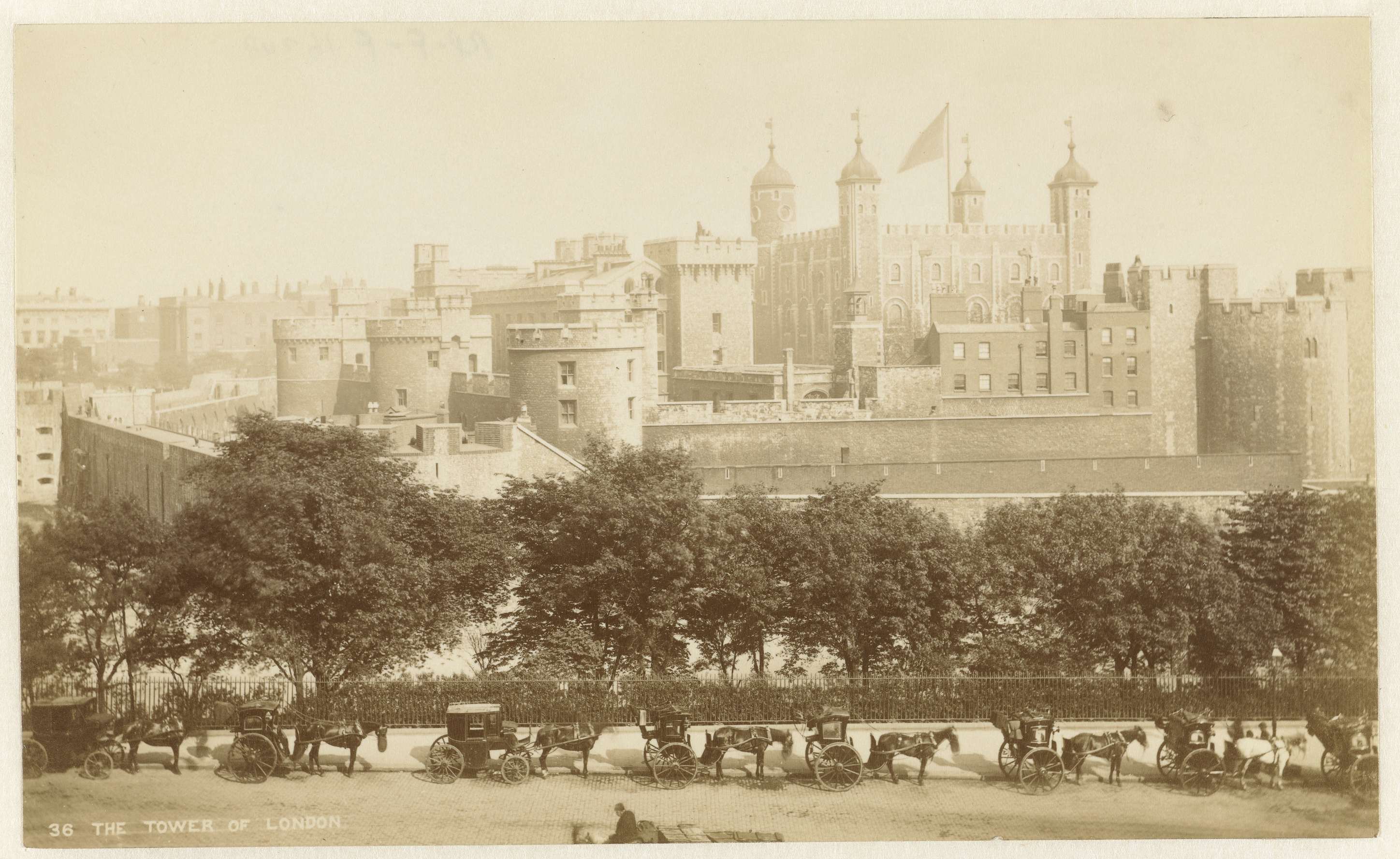 Gezicht op de Tower of London, op de voorgrond enkel...