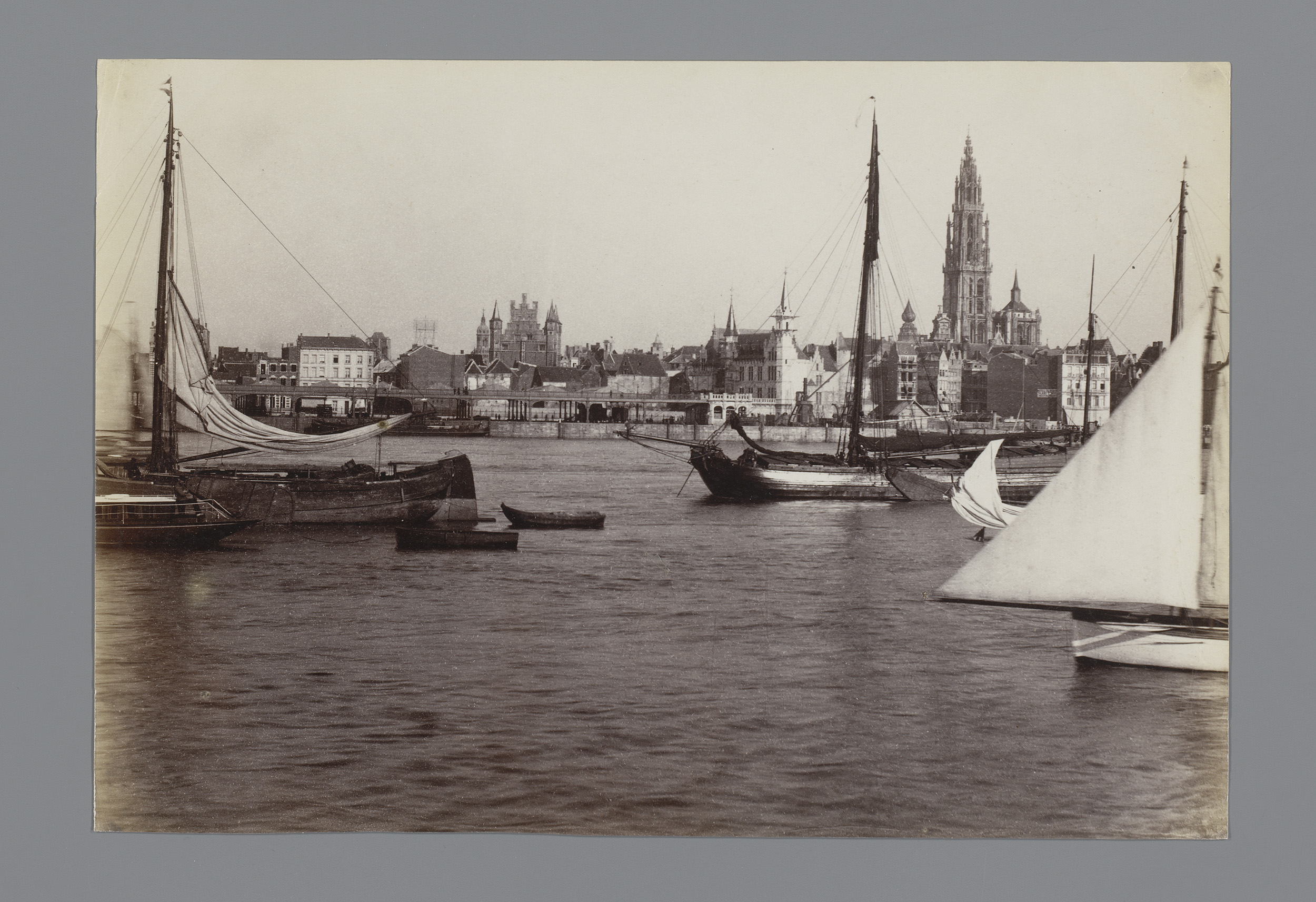 Gezicht op Antwerpen vanaf de Schelde, België
