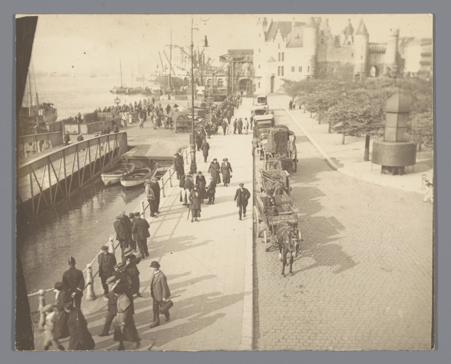 Voetgangers op de kade van Antwerpen
