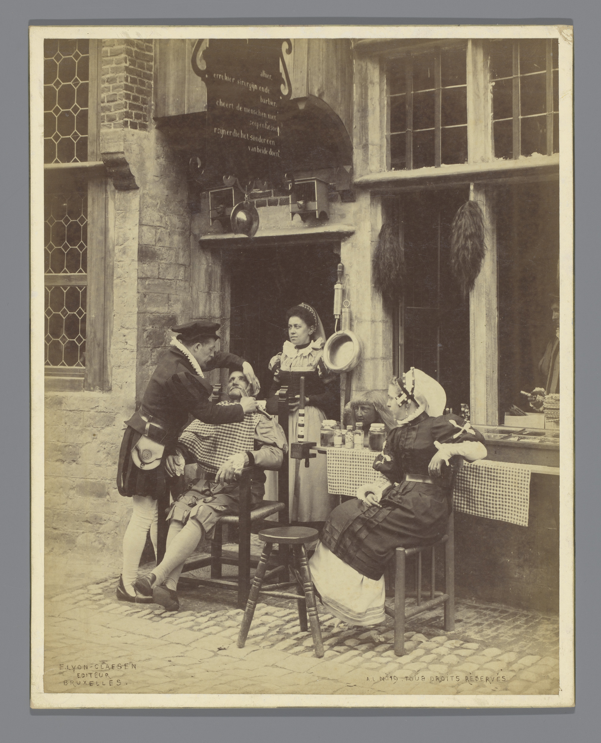 Kostuumschouwspel met een kapper ter gelegenheid van...
