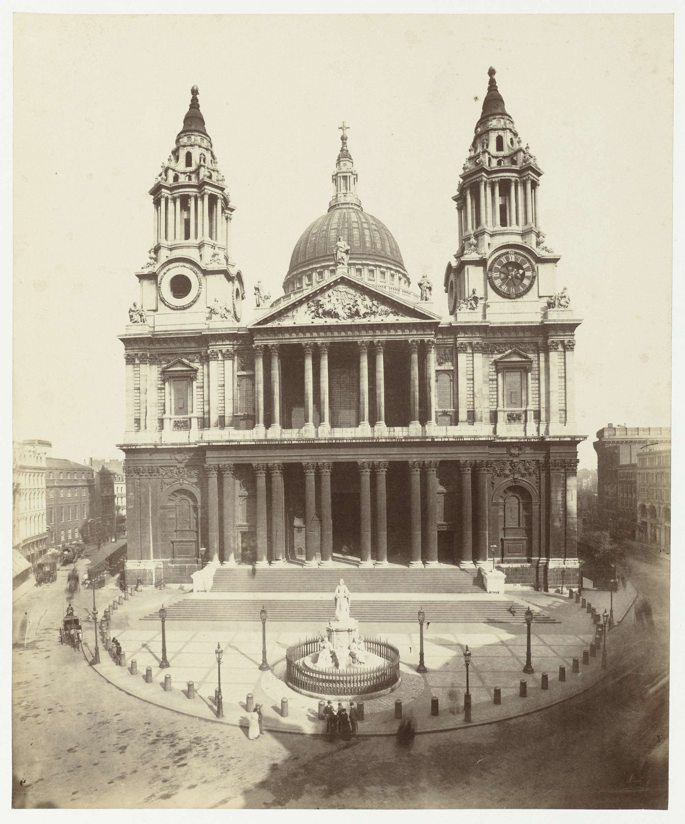 Gezicht op de Sint Pauluskathedraal en de fontein La...