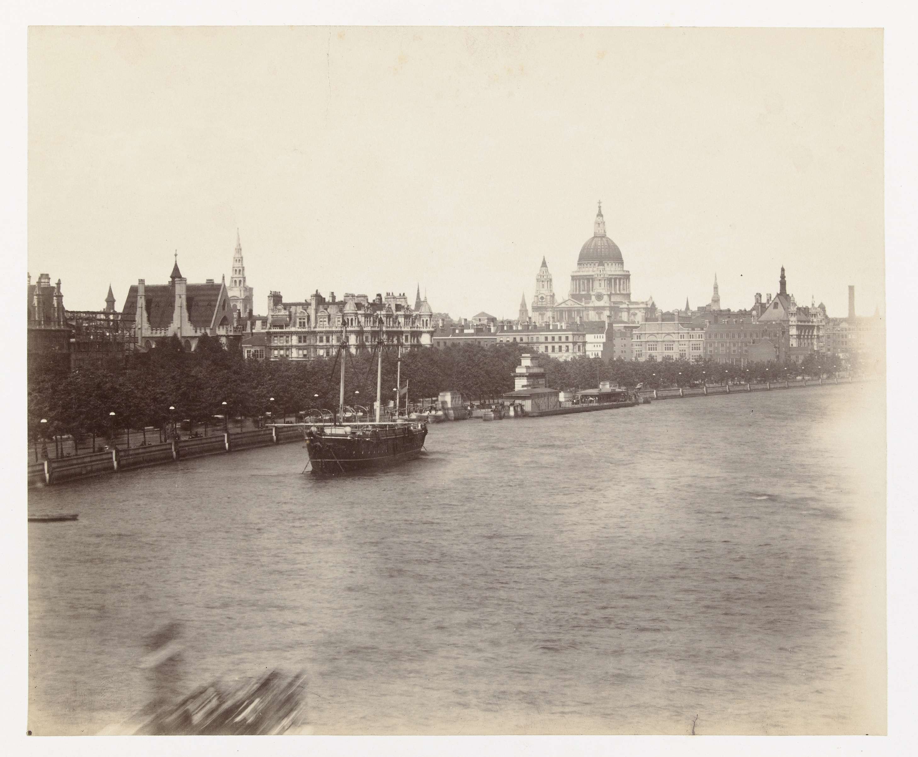 Gezicht op de Theems met St. Paul's Cathedral in Londen