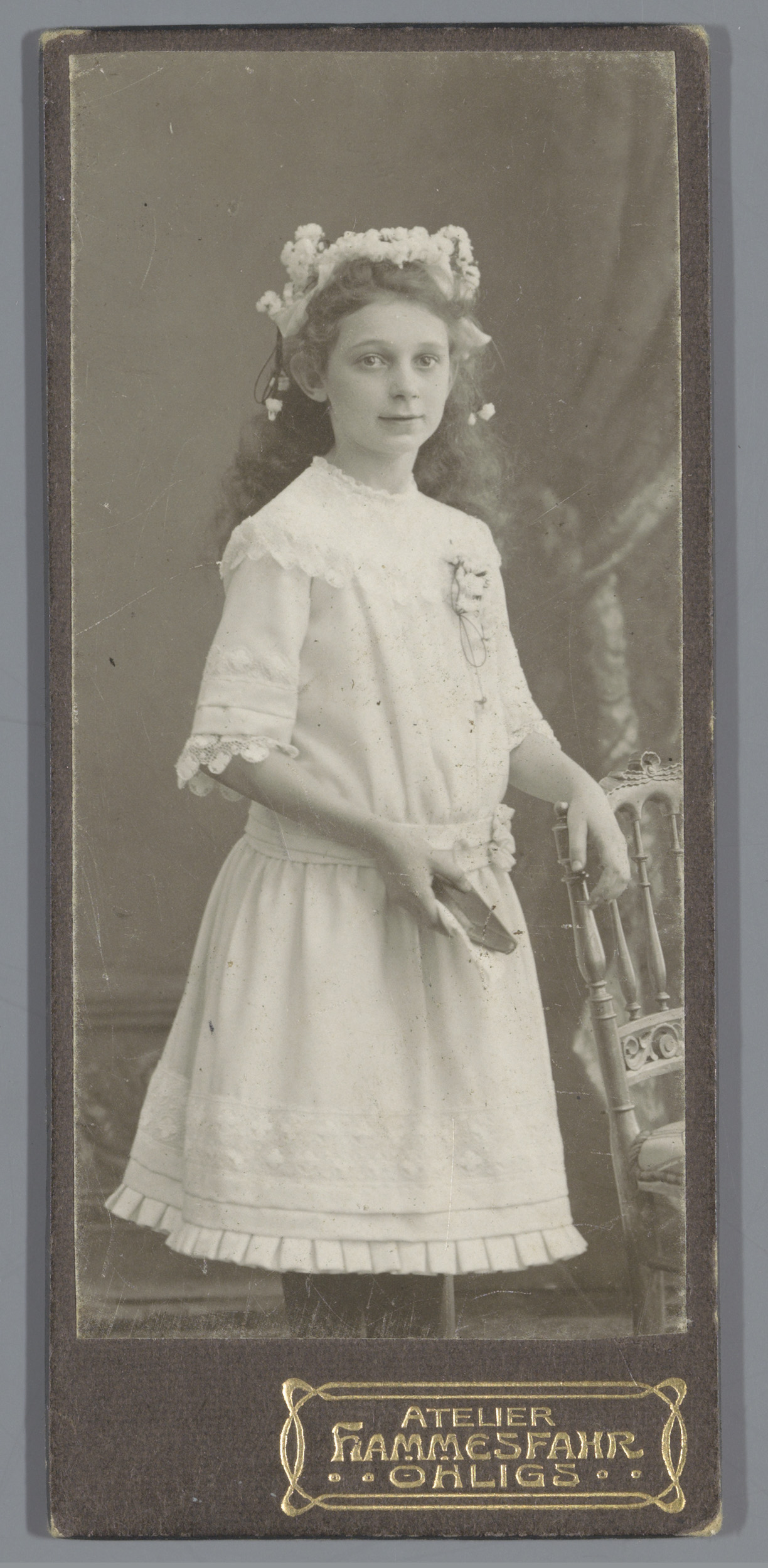 Portret van twee onbekende meisjes in witte kleding ...