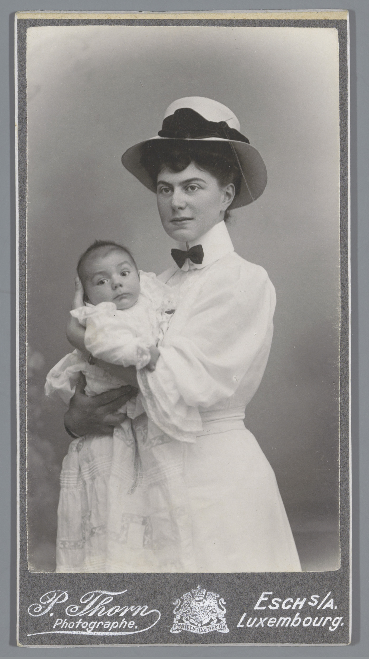 Portret van een onbekende vrouw met baby in doopjurk