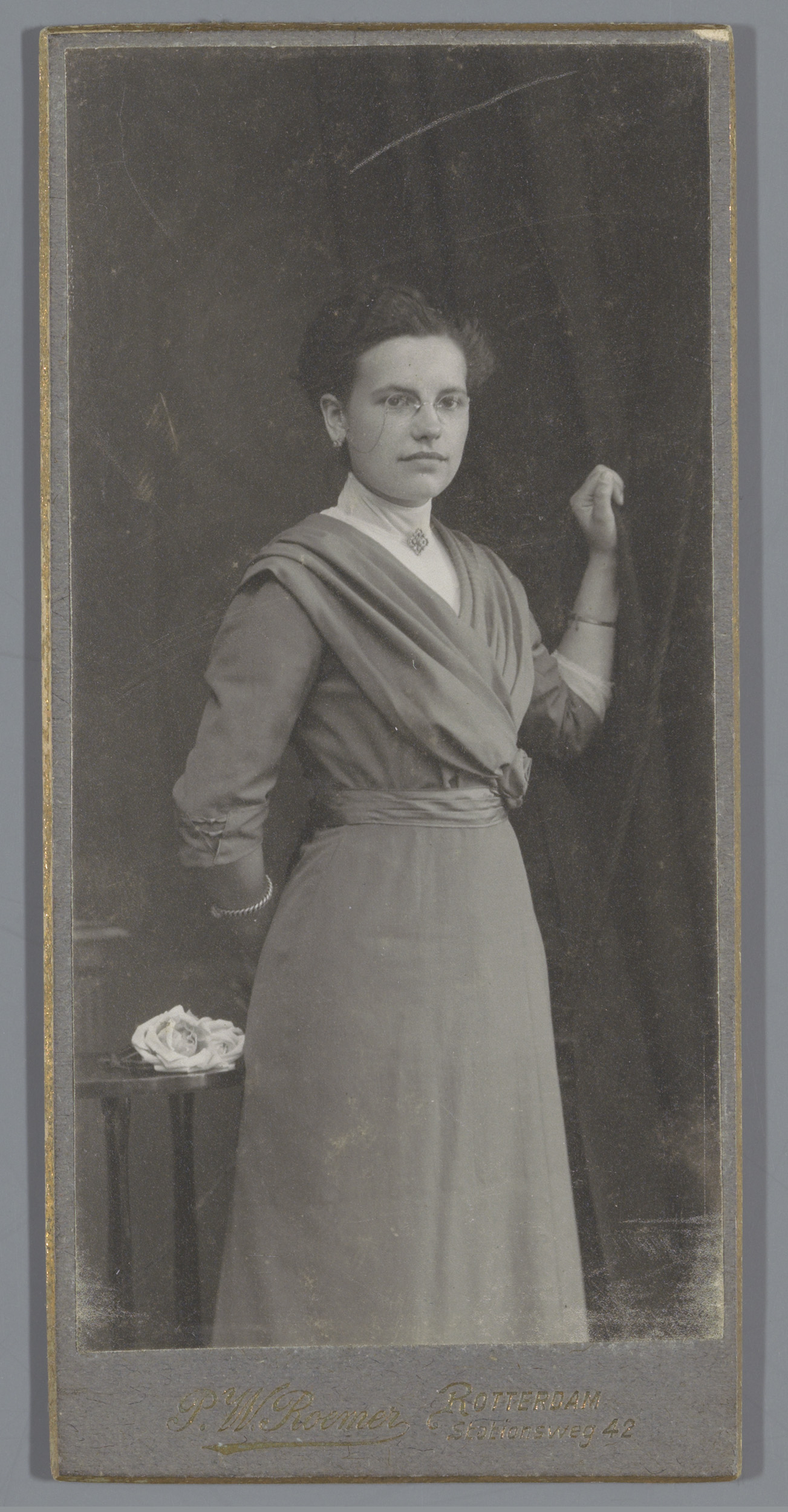 Portret van een onbekende vrouw met een roos